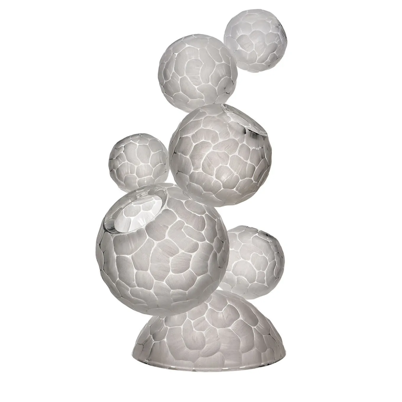 The mutation of form is inspired by historical primordial memories that have consolidated the Native leadership. The marmoreal lightness of the engraving remains fluid in the transparency created, the light goes through the shape and gives life to the object. A single emotion is perceptible by the eye and the touch.