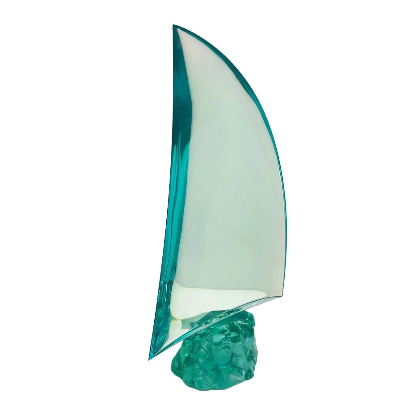 The natural crystal has high transparencies with aquamarine reflections, it has been curved and handmade to represent a sail. Every sail is a real artistic sculpture. Each crystal is exclusive and unique as it has been entirely handcrafted starting from a block of crystal. It is the perfect gift to wish for a life full of satisfaction or the right detail to complete the environment with an object of timeless charm. Every piece is unique, due to handcrafting, slight changes may occur.