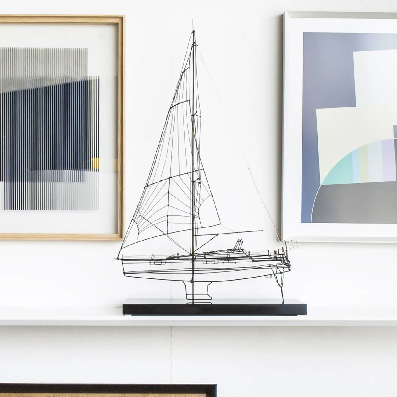 The perfect gift idea for a sea lover, this stupendous statuette depicts a Dufour sailing boat, handcrafted of black iron wire enriched with silver and bronze details. It rests on a polished black base with a mirror, that highlights its singular and lavish allure. The boat model is customizable, please consult the Concierge for details.