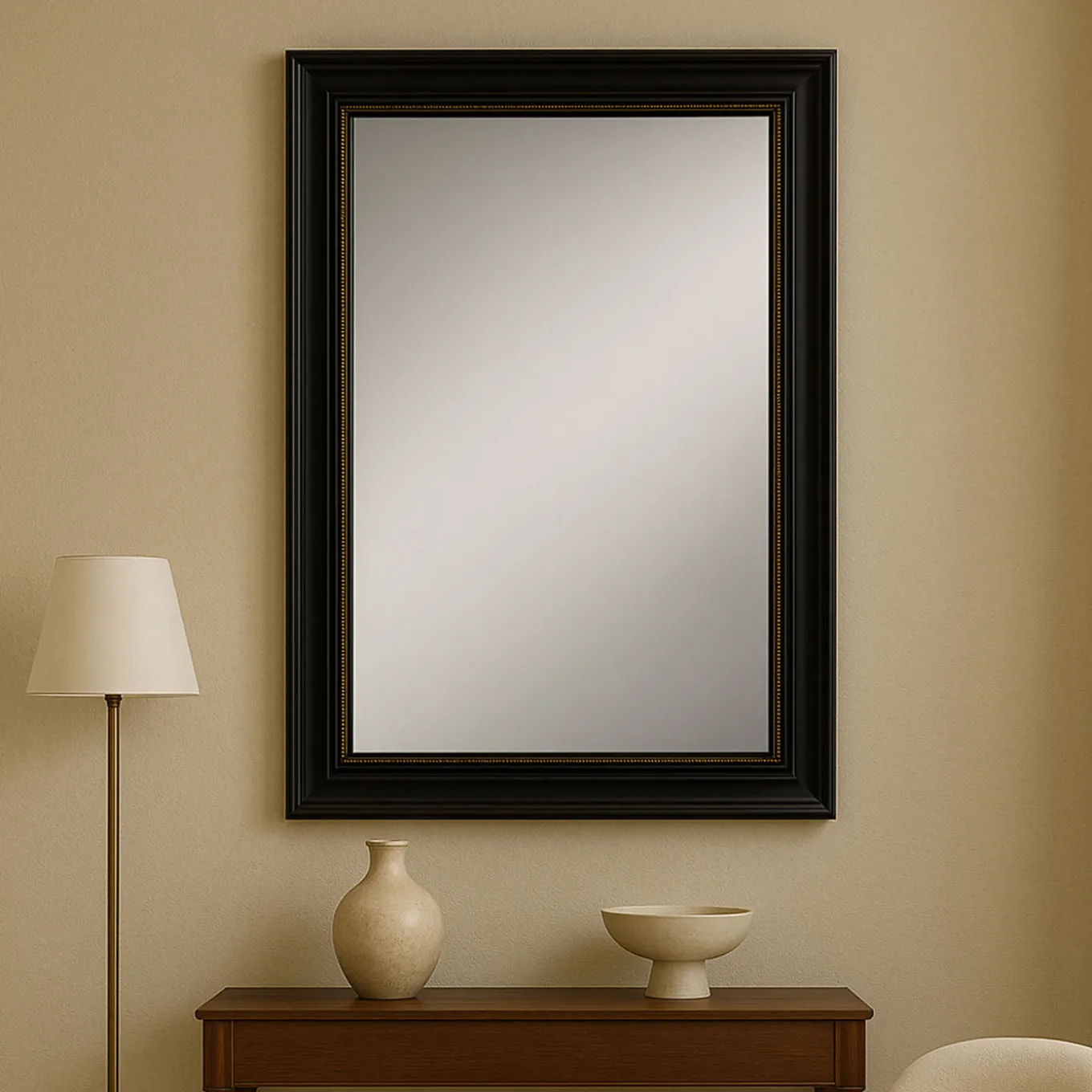 This elegant wall mirror features a Salvator Rosa-inspired frame meticulously handcrafted from solid wood. The bold ebony lacquer finish accentuates its sculptural contours, while delicate gold beading along the inner edge lends a touch of refined elegance. A timeless design masterpiece, made in Italy, that complements both contemporary and traditional interiors. Custom sizes and finishes available upon request, contact the Concierge for more details.