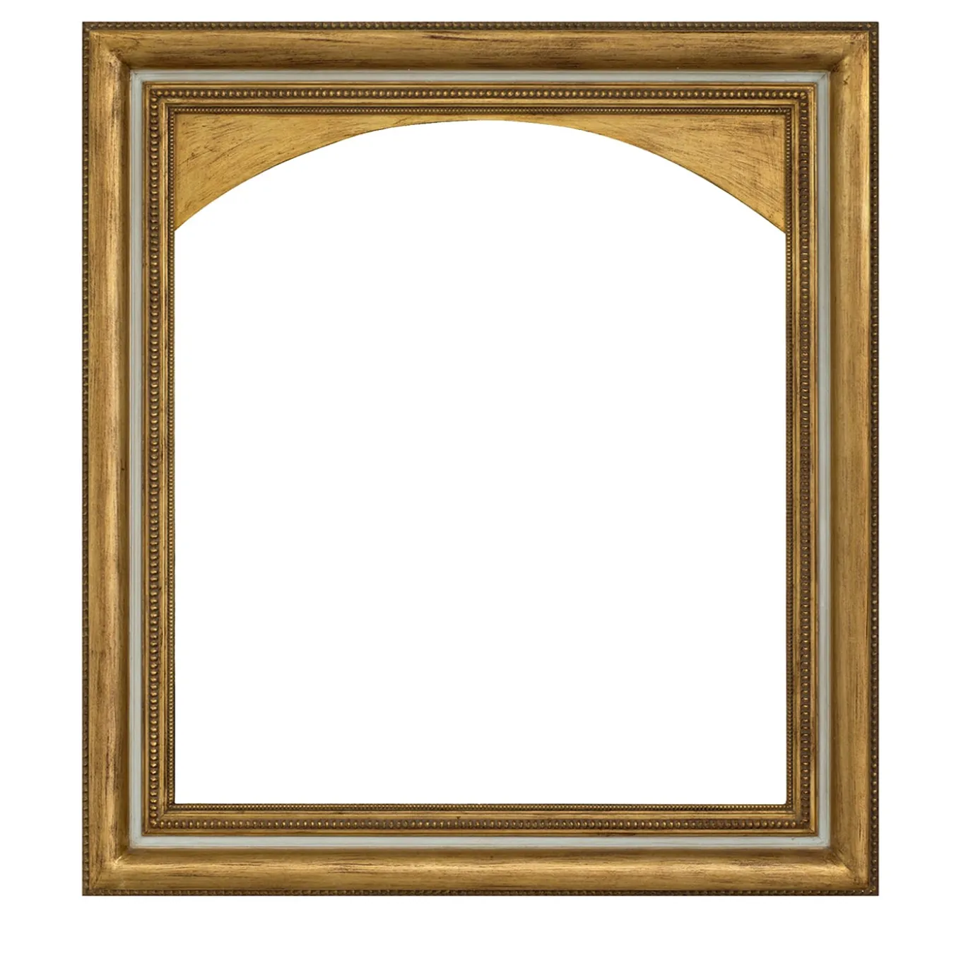 Elegant and refined Salvator Rosa frame with gold leaf and ivory lacquered finishes. The frame is decorated in the upper part with gold leaf gilded wooden arch. Internal measurement cm.90×80. Please, contact the Concierge service for further information.