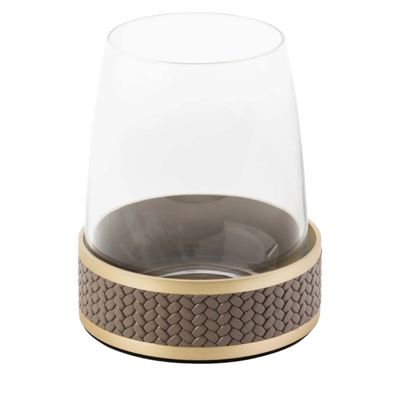 Part of the Saturno Collection of exquisite bathroom items, this glass holder elevates a simple everyday object to a precious piece of functional decor. Crafted of brass with a brushed finish, the round holder is highlighted all around with a band in leather in a rich shade of brown. The contrast in texture creates a visually striking detail, while the leather guarantees a firm grip. It is possible to choose another type of leather from Pinetti’s catalog – please ask the concierge for details.