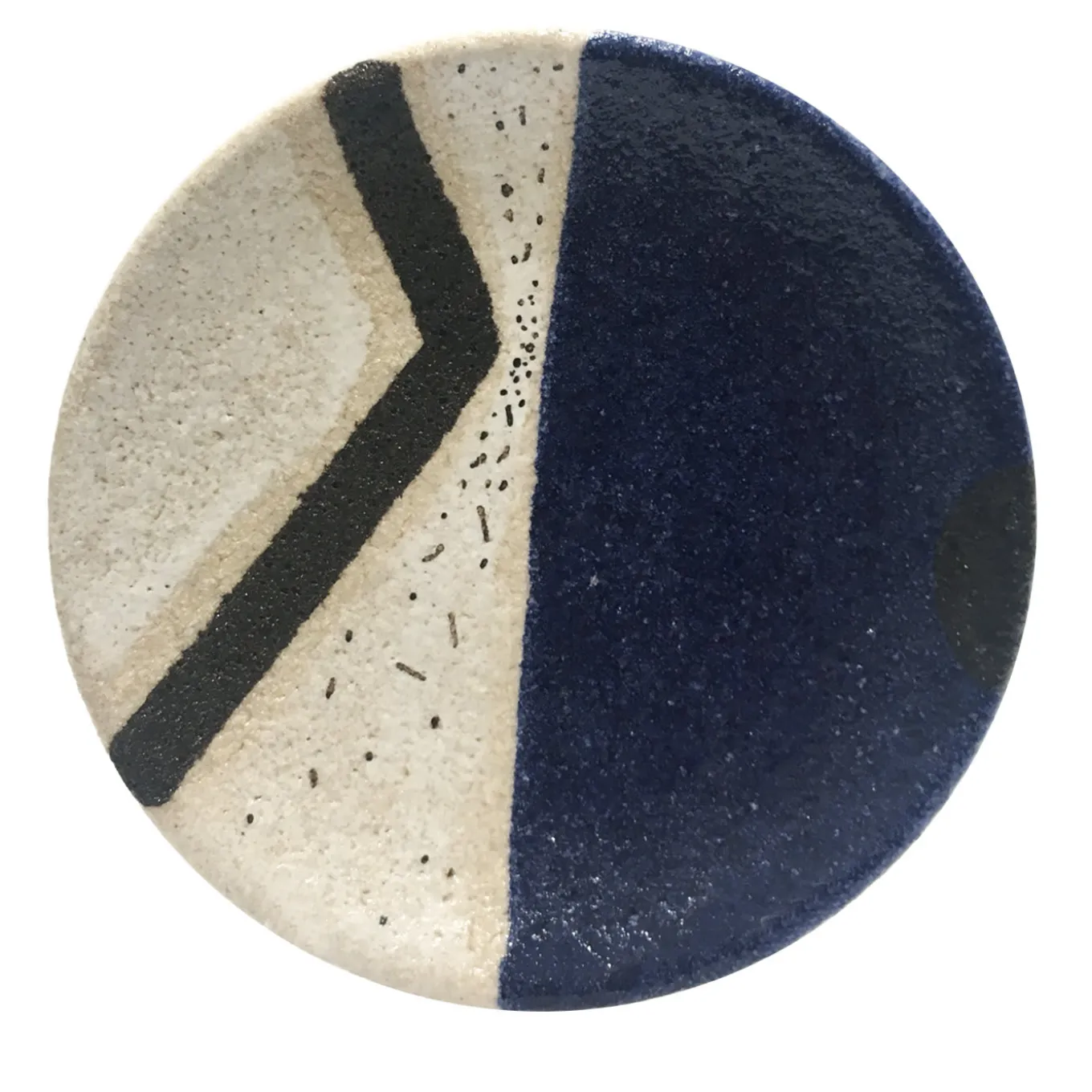 25This superb ceramic plate is part of the Segno Series, featuring masterfully crafted ceramic plates painted by hand that revisit the colors of the Mediterranean Sea. Merging traditional craftsmanship and innovative artistic vision, this refined, glazed plate has a half cobalt blue and half cream background. A bold, black V-shape appears on the cream-colored section to create a graphic interruption. Displayed alone or with other decorative plates of the same series, on a wall or as a centerpiece, this piece will be a stunning visual focal point.