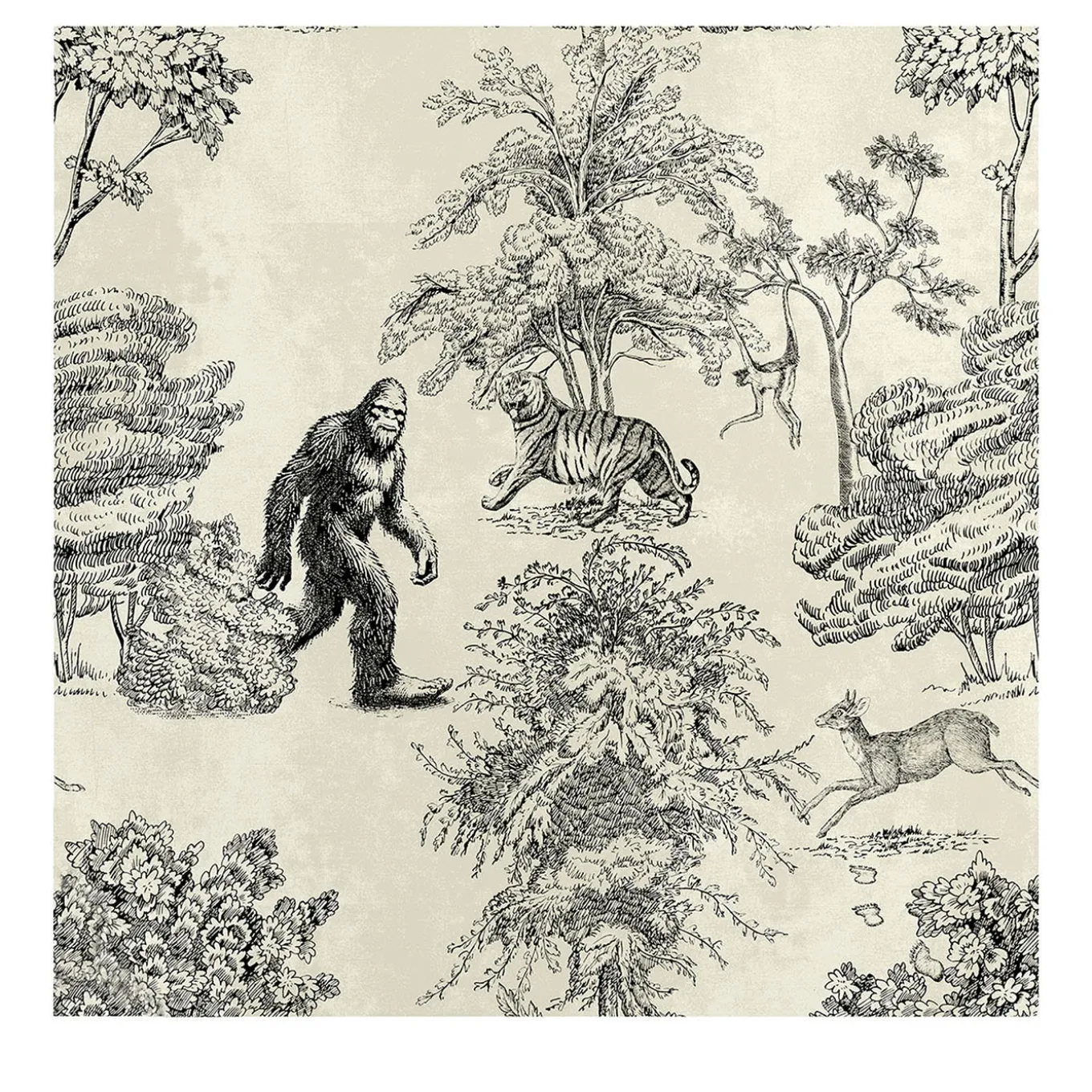 The wallpaper is made from 100% ecological paper, printed with vegan water-based inks, and free of chemicals and solvents. Each package contains eight sheets. Inspired by 18th-century English tradition and printed in Italy, it’s perfect for walls, shelves, and furniture. It blends classic toile design with a whimsical twist, featuring enchanting forest scenes and the legendary Bigfoot. The price refers to one package containing 8 sheets of premium wallpaper. Each sheet measures 27.5 x 39.4 inches (70 x 100 cm), for a total coverage of 59.2 sq. ft. (5 mq).
