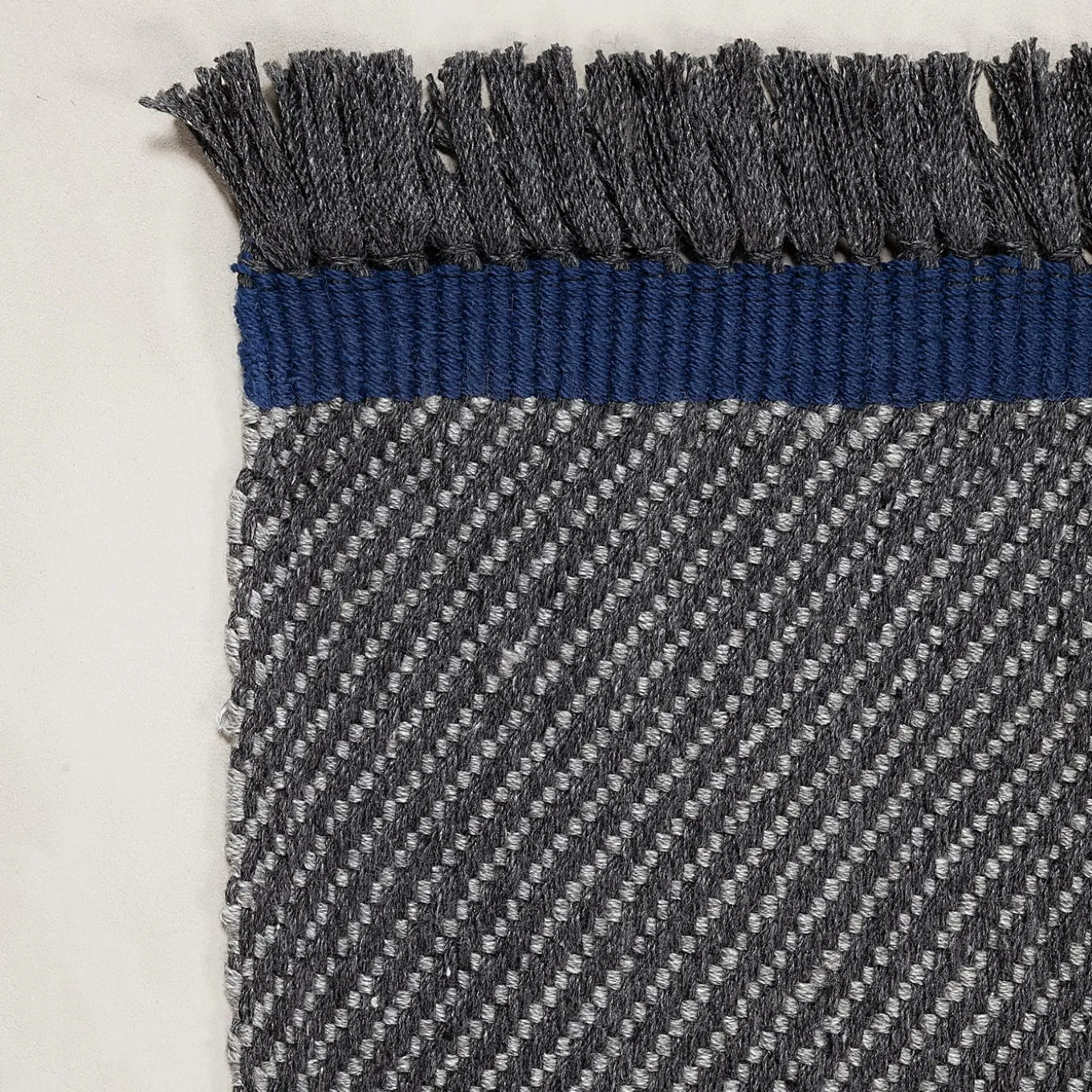 Designed with mélange tones and a diagonal weave, this rug combines textural depth with a refined charcoal base. The deep black fibers are subtly contrasted by neat blue bands, enhancing its structured aesthetic. Made from 100% recycled PET, it delivers durability, sustainability, and timeless sophistication, making it a seamless addition to modern interiors and transitional outdoor spaces. Suitable for both outdoor and indoor use.