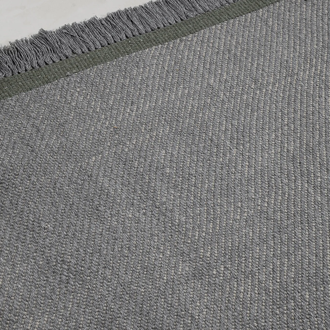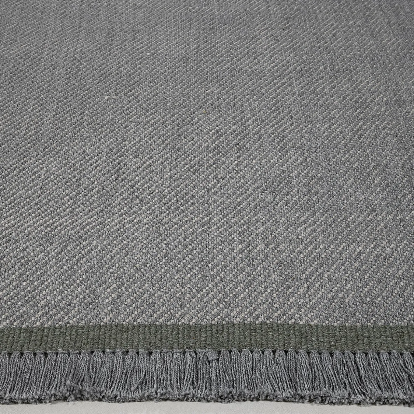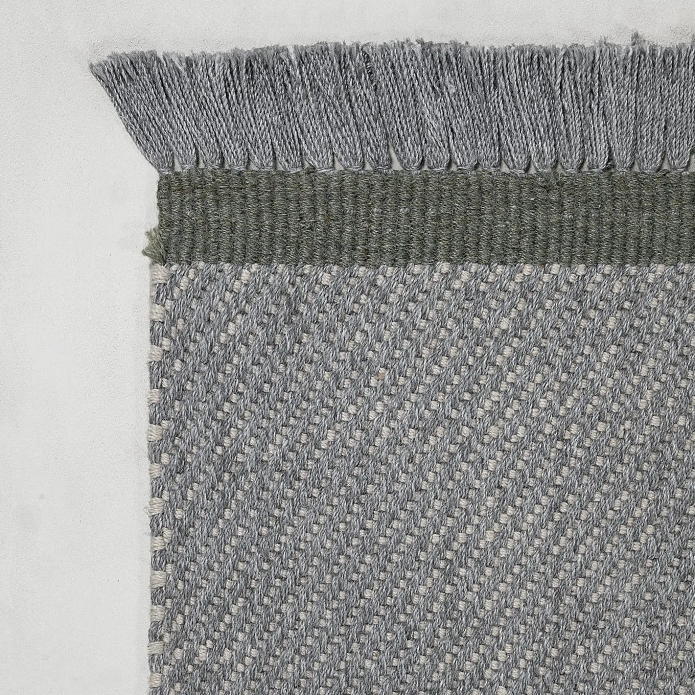 Refined yet understated, Sesame Gray embodies a balance between structure and fluidity. Handwoven in four mélange tones, its diagonal weave gives depth and dynamism, while contrasting bands at the edges define its elegant presence. This piece seamlessly integrates into indoor and outdoor spaces, exuding quiet sophistication. Made from 100% recycled PET, it offers sustainability without compromising on texture, ensuring durability and resilience in everyday use. Suitable for both outdoor and indoor use.