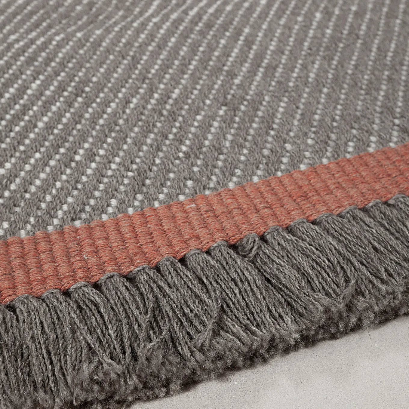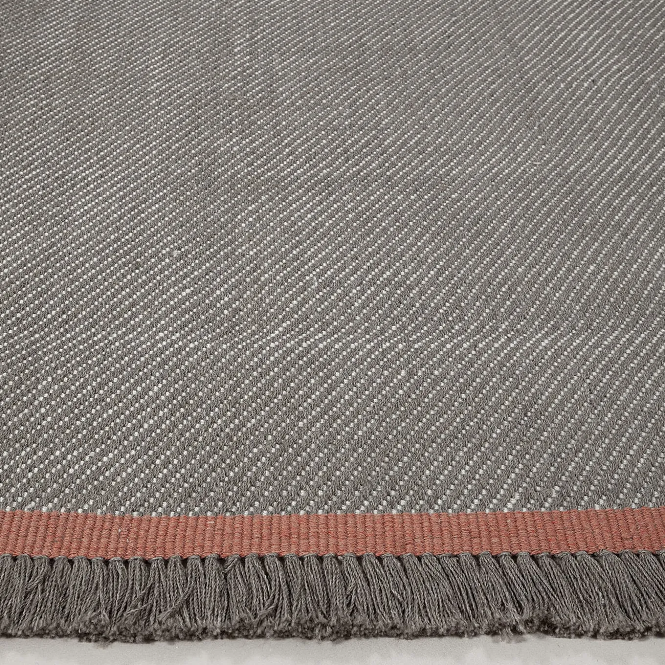 Handcrafted with precision, Sesame features an elegant diagonal weave in a harmonious taupe palette. The contrasting border bands add a refined touch, emphasizing its structured yet soft design. A perfect complement to indoor and outdoor spaces, its balanced composition fosters a sense of harmony and sophistication, while the recycled PET fibers ensure a sustainable and durable choice. Suitable for both outdoor and indoor use.