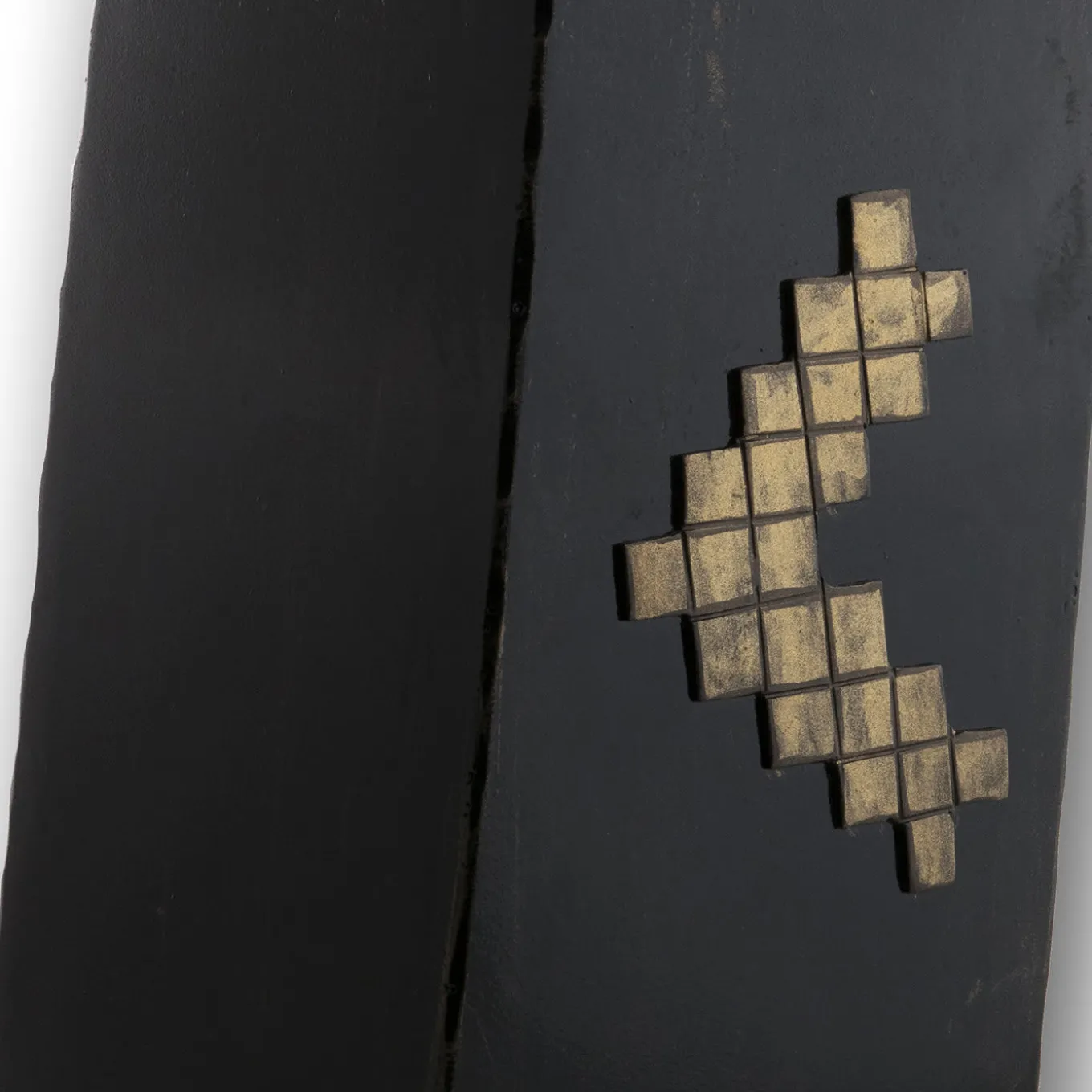 Outstanding craftsmanship and traditional motifs merge in this enticing steel vase forged and engraved by hand, whose bias cut enhances its dynamic and sculptural allure. A polished-golden arrow point composed of small squares stands out on the burnished black background. Inspired by the traditional textile art from the Sardinian town of Sarule, this motif called S’Essere (“the being”) symbolizes order, harmony, and perfection and is linked to the human body and its ability to perceive forms and colors. Small variations are marks of a handmade process that makes each piece unique.
