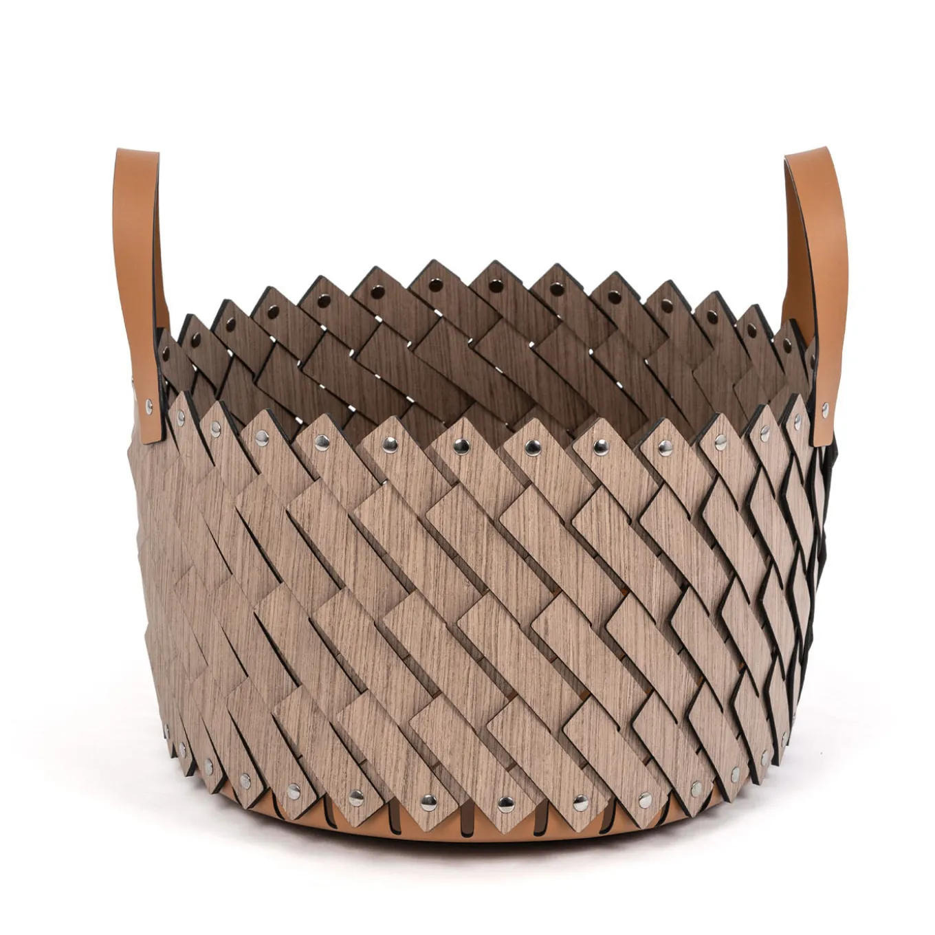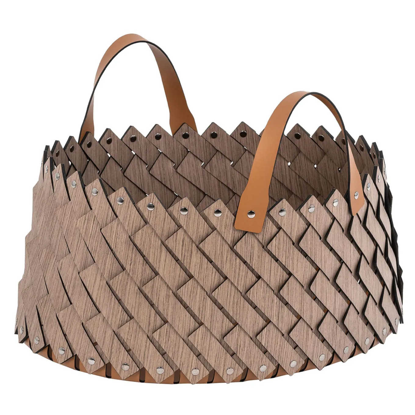 The Sestriere oval wood basket features the distinctive Pinetti weave enhanced by Alpi® wood, known for its durability and resistance. This generously sized basket offers ample storage space for towels, magazines, blankets, or shoes, combining functionality with innovative craftsmanship. Equipped with sturdy handles, it is designed to be both practical and visually appealing for various interior settings.
