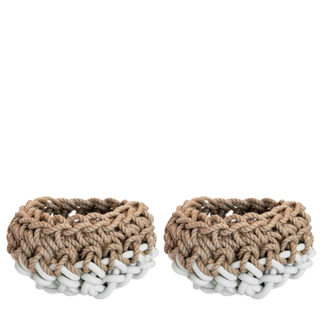 Showcased as an empty-pocket tray, centerpiece, or cachepot in a contemporary decor, this basket exudes timeless elegance. Deftly hand-crocheted, it is made with a combination of natural hemp yarn and white-colored waterproof neoprene yarn. Available in various tones, please consult the Artemest catalog for options.