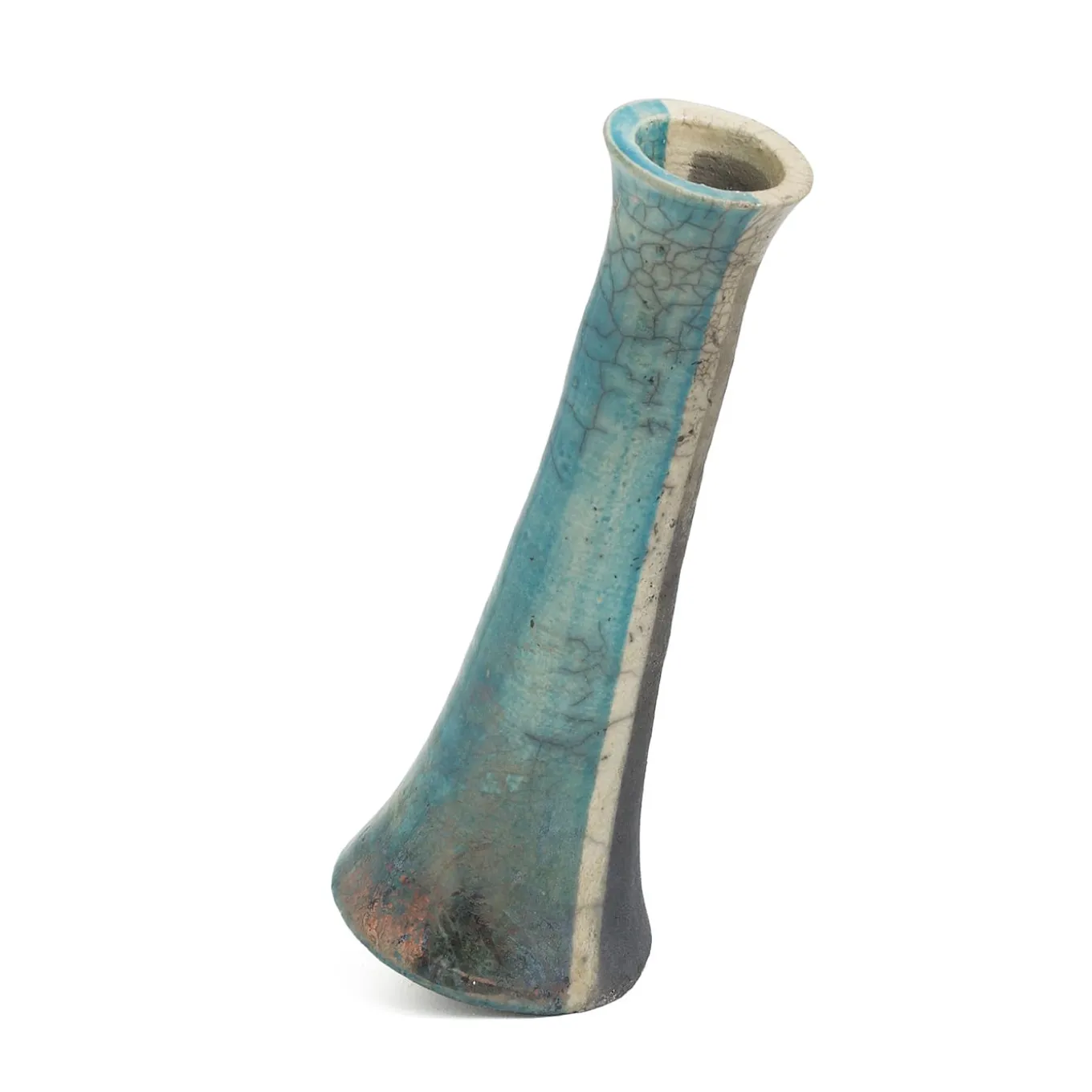 Turquoise and crackle’ effects are the main colors of these candle holders but the black and burnt effect is present on both the outside of the pieces and the inside of the mouth holding the candles. A symbol of impermanence under the dim light of a candle.