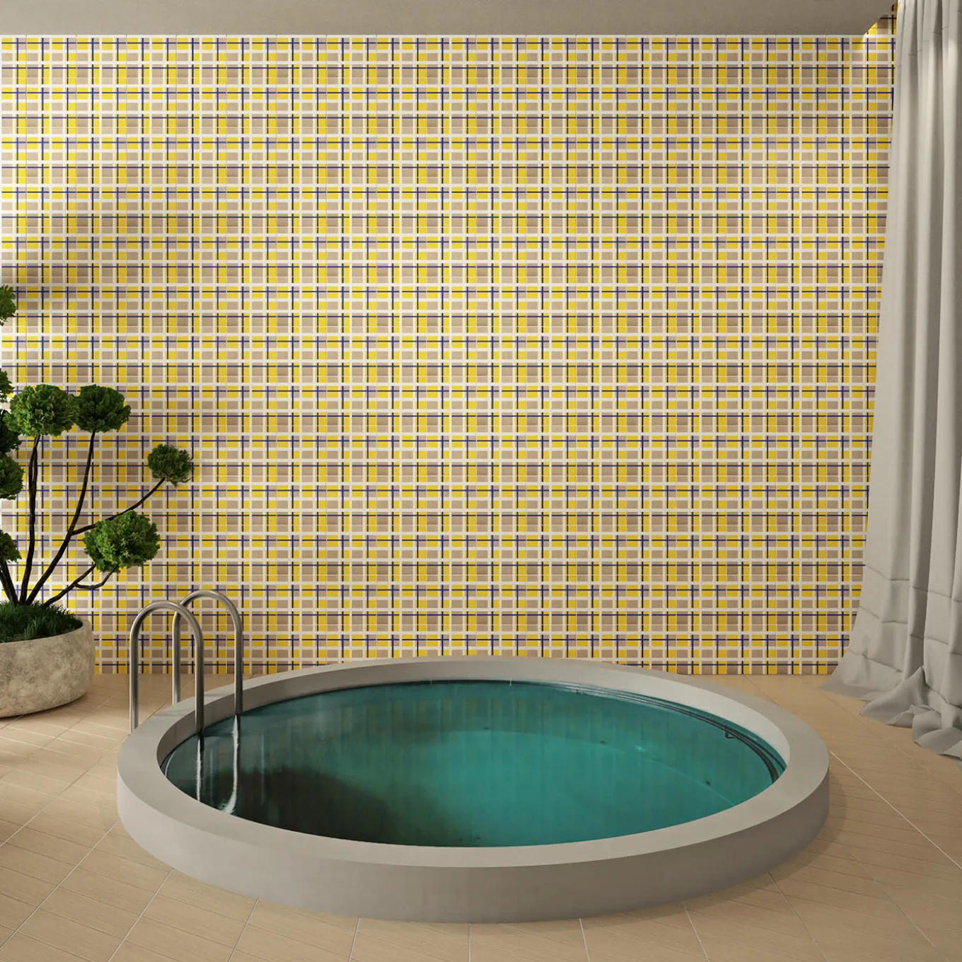 Inspired by tartan, a timeless fabric from the Scottish Highlands, this collection reinterprets its iconic geometric patterns with intersecting lines and squares. Designed by Giuseppe Oliva, each 1 sqm set features 25 hand-painted tiles (20×20 cm, 0.9 cm thick, 18 kg) on semi-gloss Vietri White ceramic. Also available in a 40×40 cm format (1 cm thick, 23 kg). Customizable colors. Indoor finish on ceramic support. Contact the Concierge for further information.