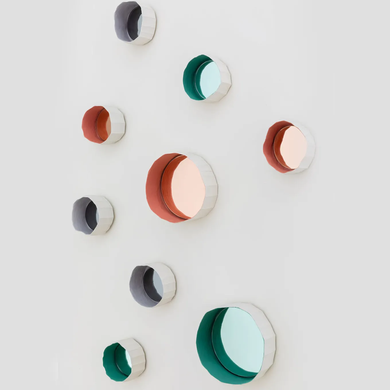 Handmade in Italy by Paola Paronetto & , this mirror merges ceramic with glass. NINFEA from REFLECTIONS, a fusion of distinctive materials developed by their creators, unites an apparently light material such as paper clay with the crisp lines of the mirror. The result is a thoughtful and meticulous balance, warm and delicate. The chromatic harmony is purposeful and unites the two materials seamlessly. Available in an extensive palette of colors for bespoke requests.