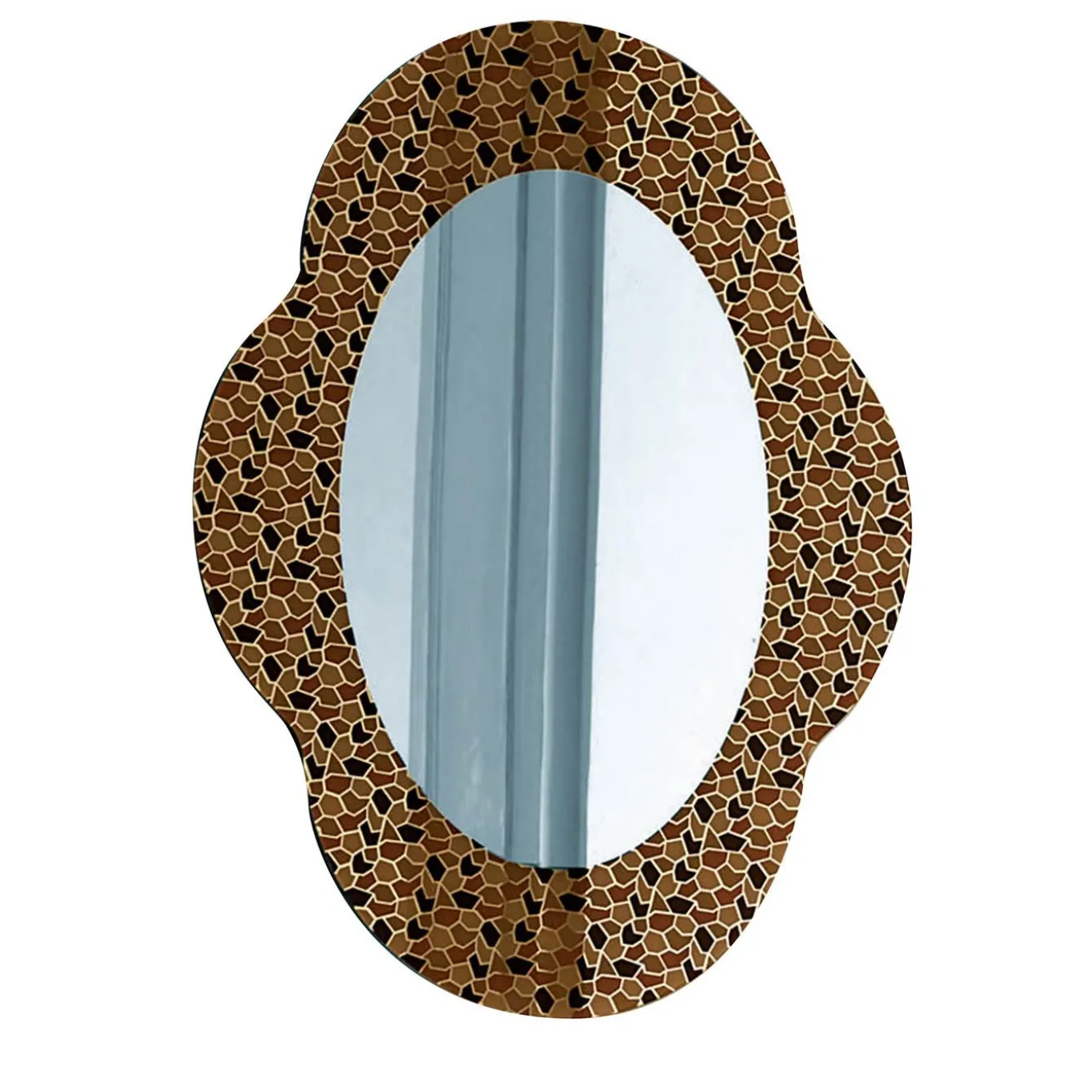 Part of the refined Settecento collection designed by Alessandro Mendini, this crystal mirror boasts an oval frame in the shape of a flower with polychromatic decorations in ochre and brown. Cut using the water jet technique, the colored crystals create a mosaic effect that will enliven a modern and contemporary interior dominated by neutral palettes. This mirror is also available in green/blue and gray/black.