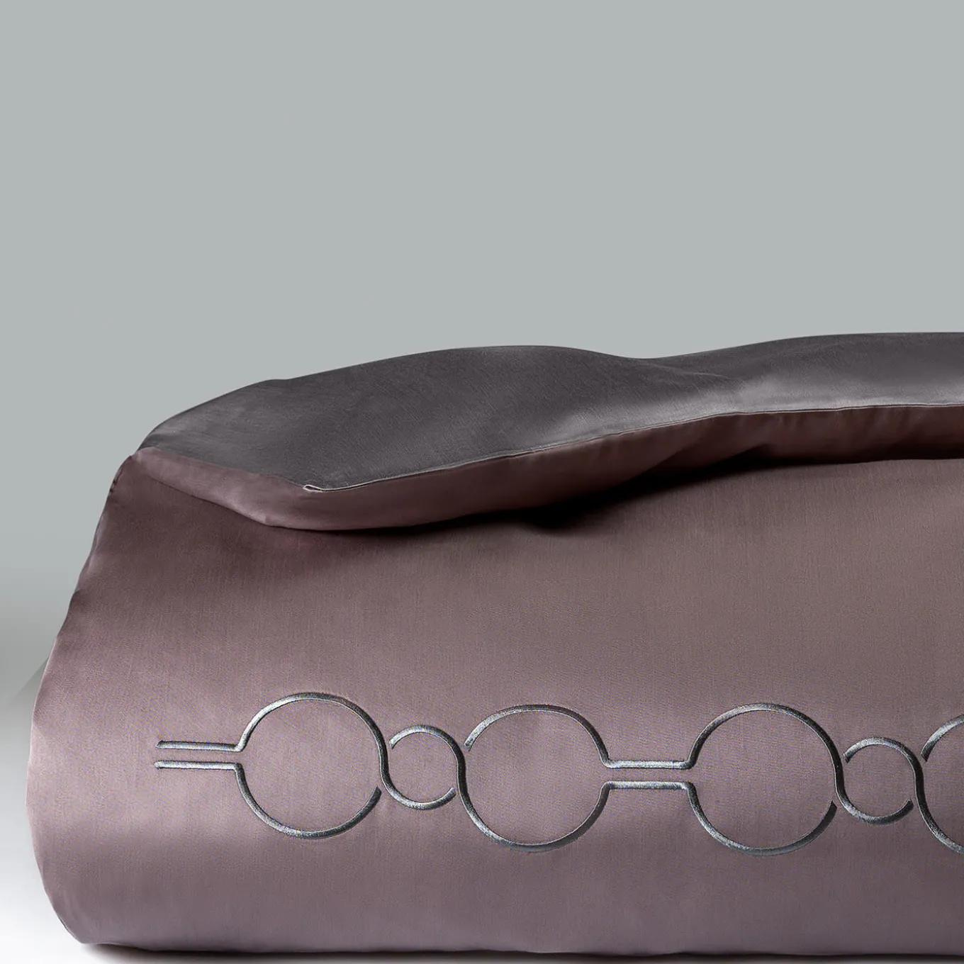 A shimmering top embroidery inspired by an ancient Japanese frieze adorns this superb double bed duvet cover fashioned of top-quality cotton satin here offered in a romantic pink shade. The 300 thread count attests to the exceptional quality and durability, while the concealed zip closure further seals the piece’s elegance. Please inquire with the Concierge for care instructions.