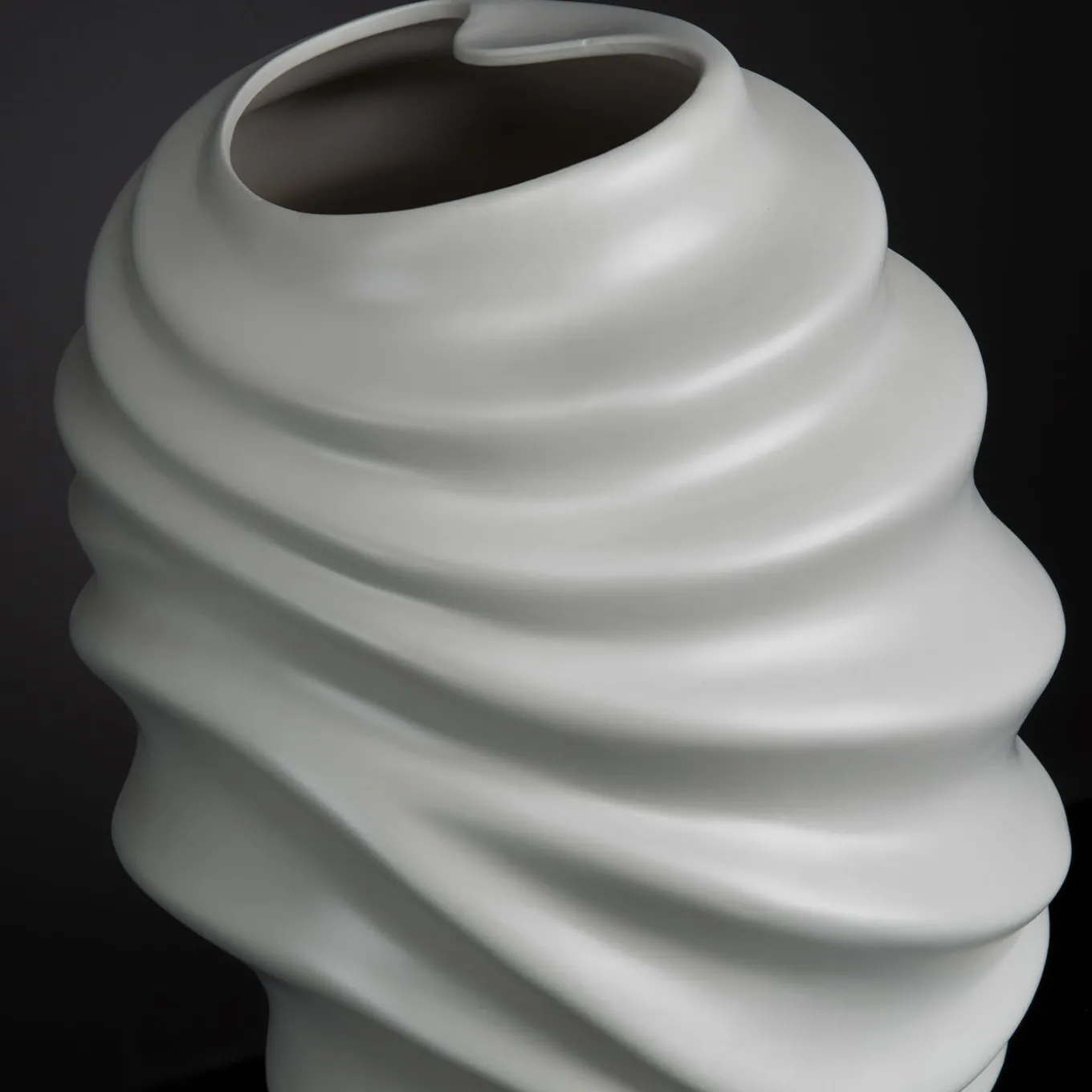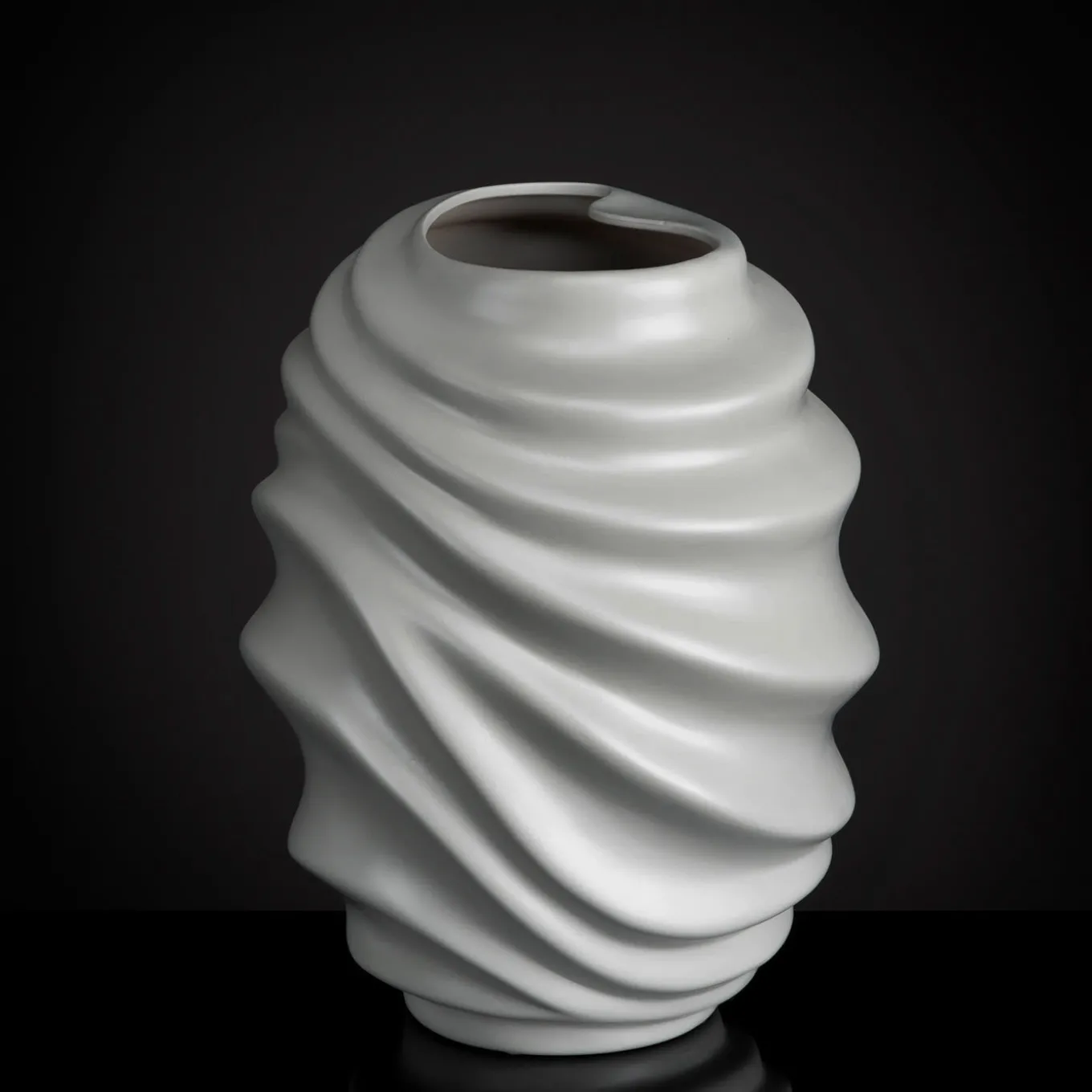 A polished and creased texture distinguishes this exquisite ceramic vase. Inspired by the wrinkled skin of Chinese dog breed Shar Pei, this vase boasts a delicate gray color and that will make an elegant and refined statement in any contemporary decor.