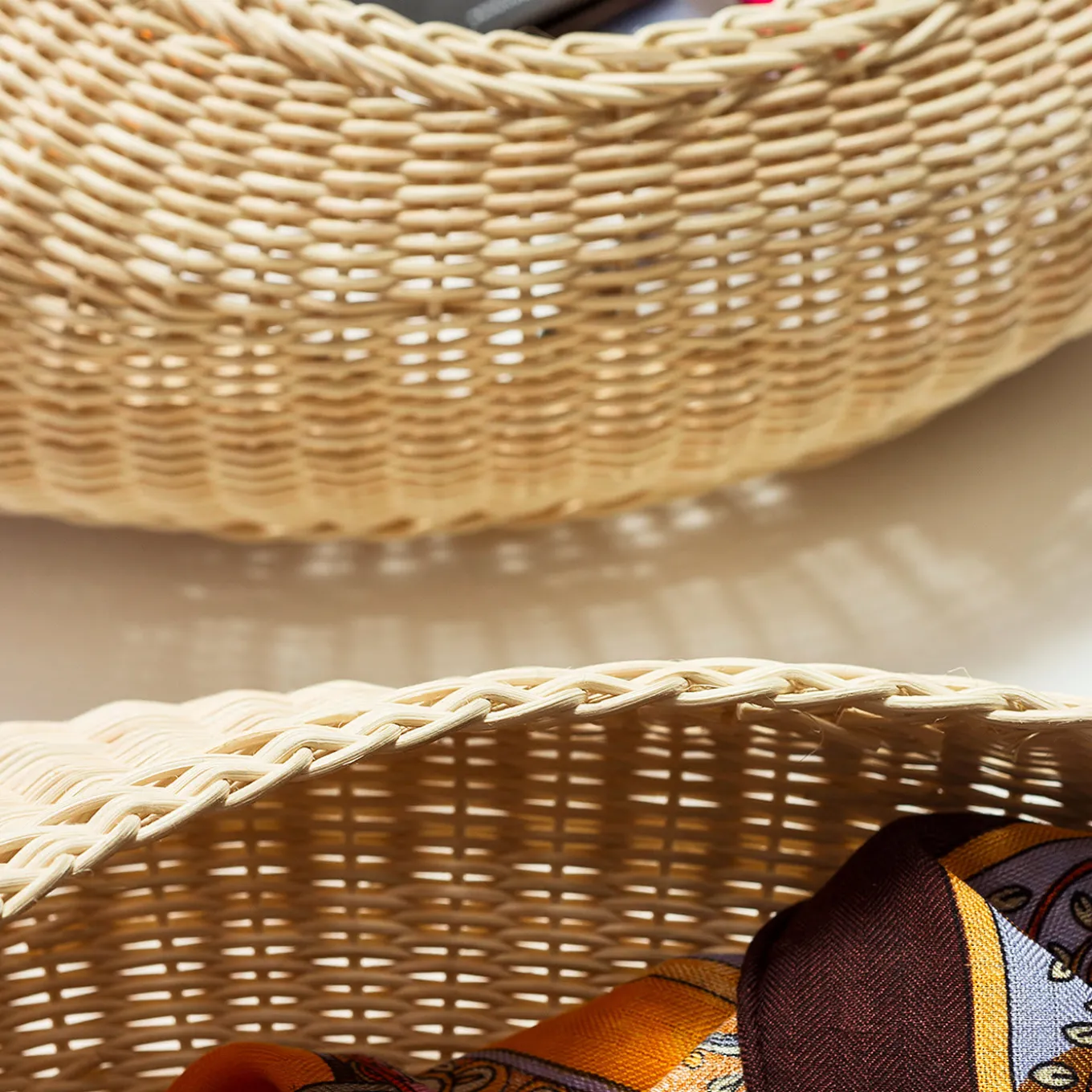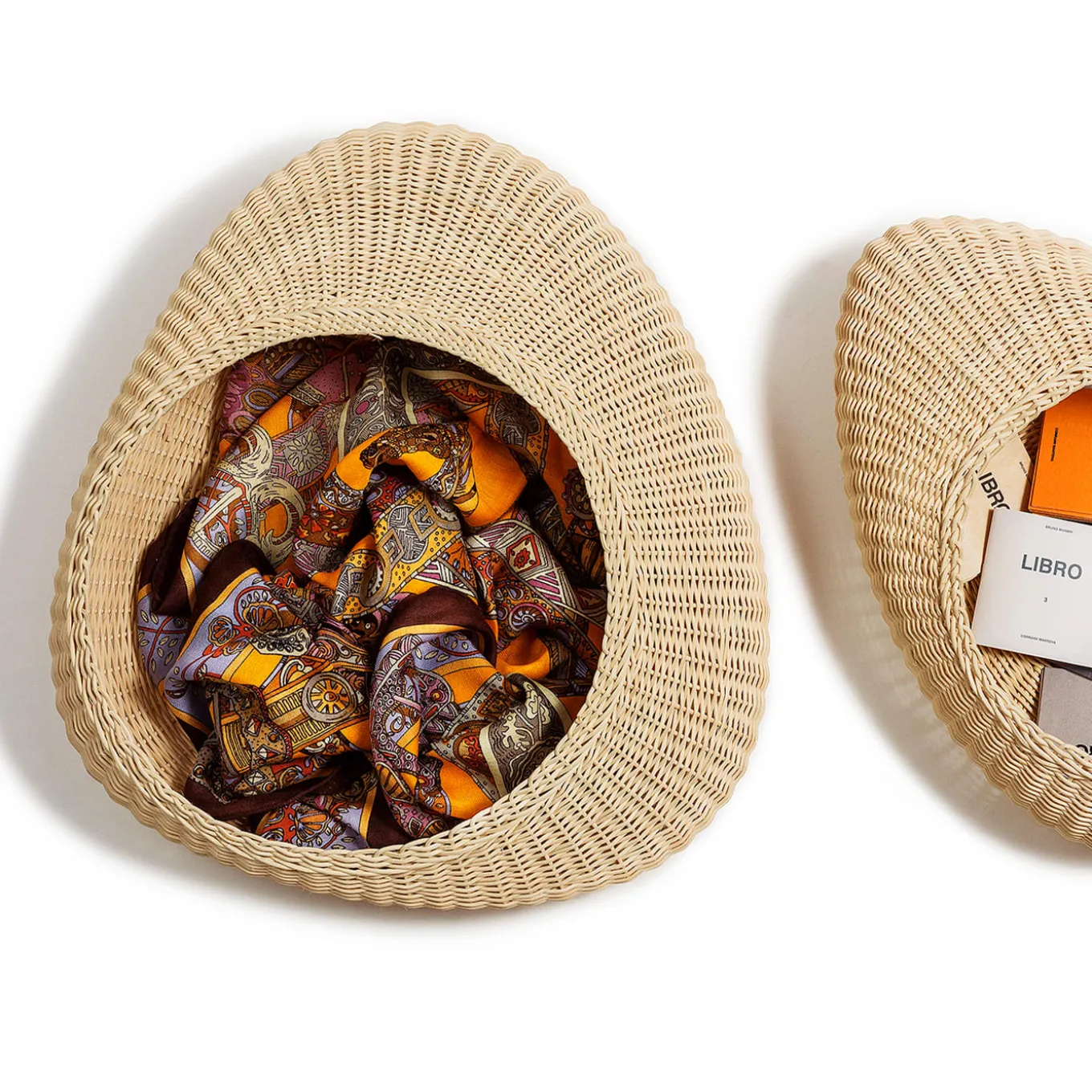 Shizè is a container crafted from natural rattan and entirely handwoven. It features a leather lid that covers its opening, adding a refined touch. The shape of Shizè is inspired by river stones, smoothed over time by the continuous flow of water, giving it a naturally rounded appearance.