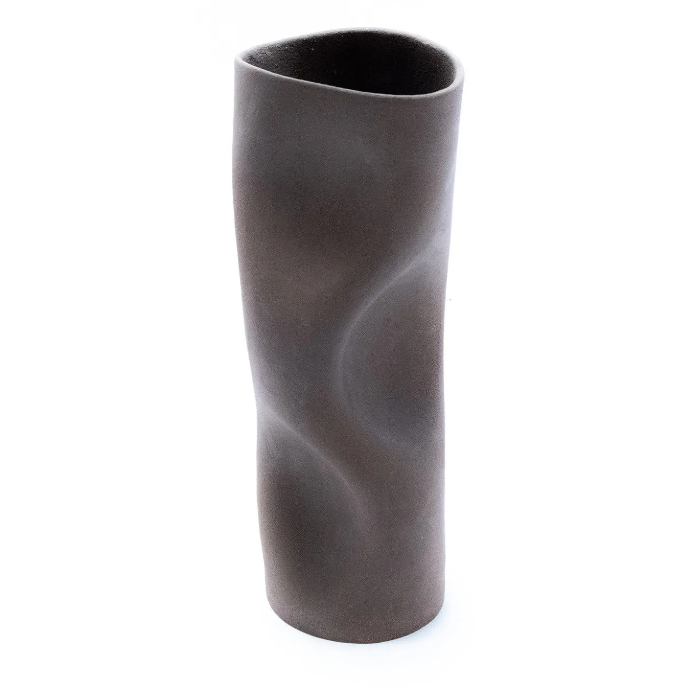 This gorgeous piece belongs to the SilkPots Collection inspired by the interplay of lights and shadows in a dense forest. Just like the curves and bends of a tree are unique, these pieces are all one-of-a-kind and cannot be duplicated. Showcasing a curved and sinuous silhouette, the Carpinus is completely handcrafted from black colored paste stoneware and will be the focal point in a contemporary living or work space.