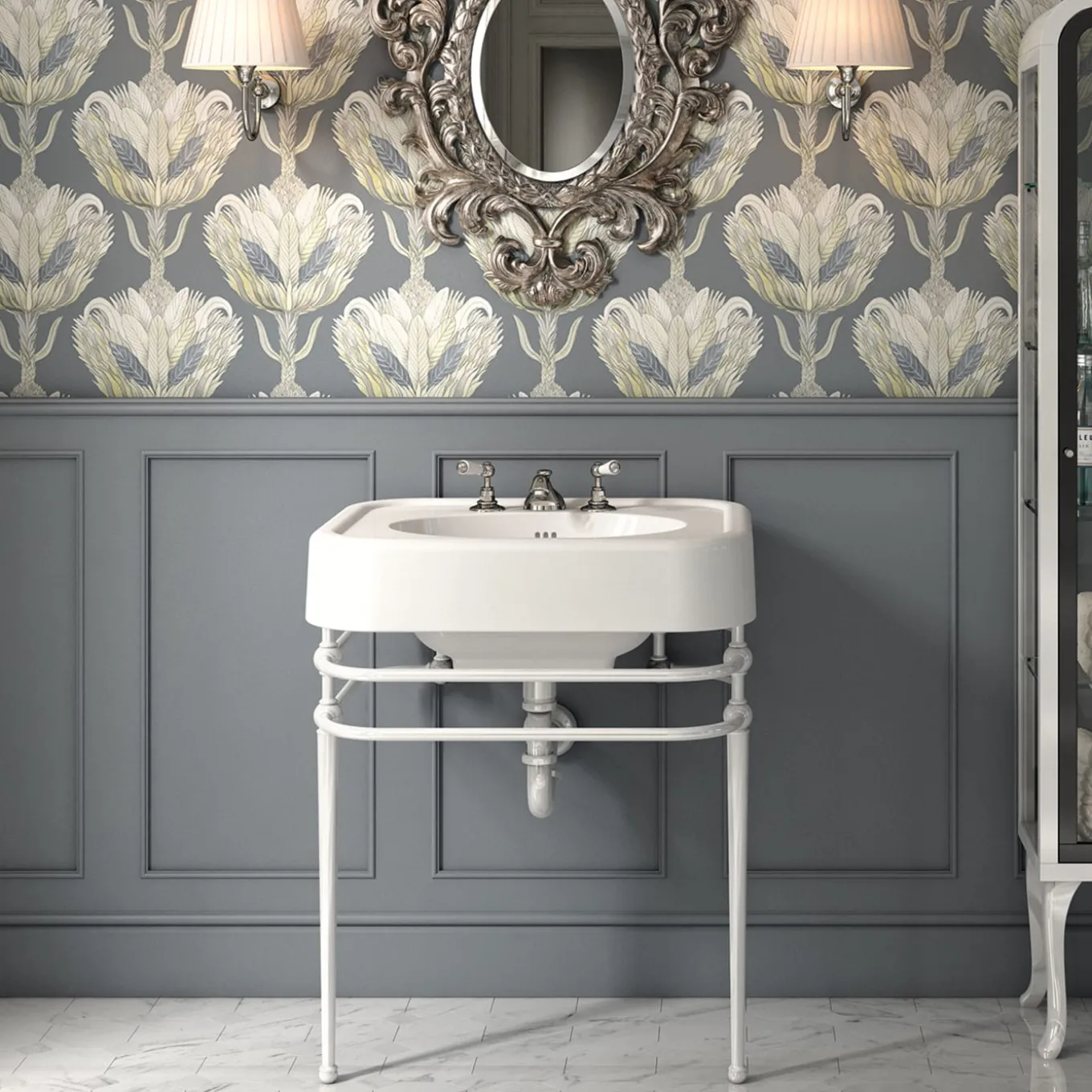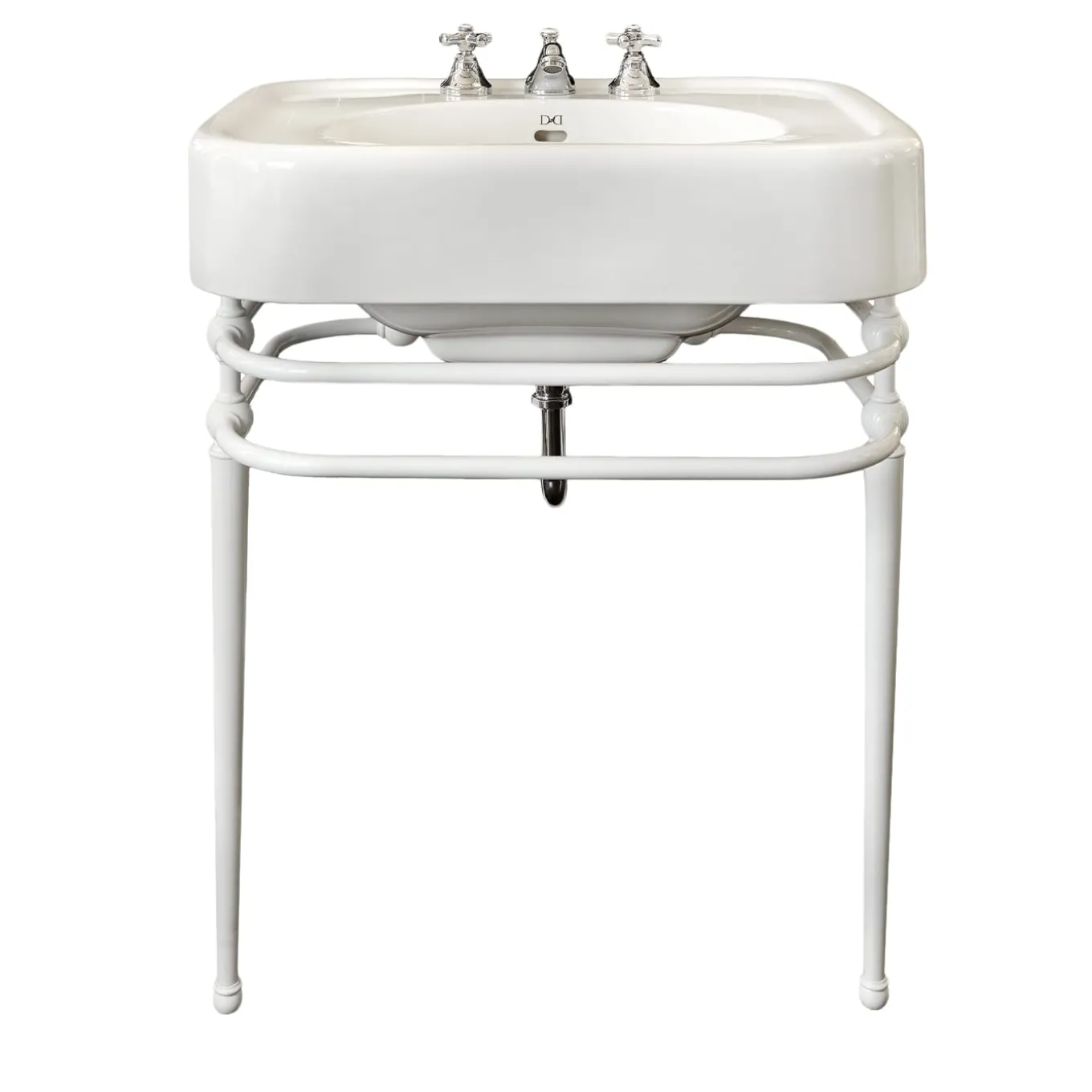 The lively atmosphere of New York in the nineteenth-century is represented in a large console which combines the 1950’s taste with the contemporary spirit. The bearing structure, with a towel rail, consists of tubolar elements in turned brass, available in chrome, light gold, polished nickel and satin white finishes.