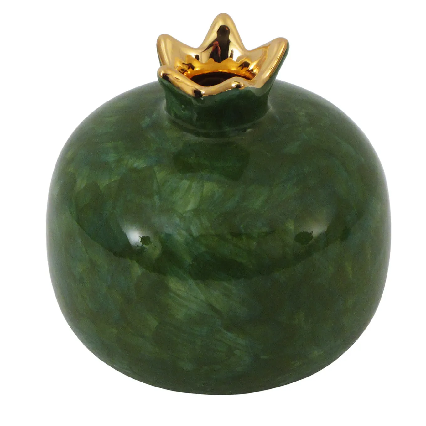 Symbol of fertility, rebirth, and love, this charming ceramic pomegranate makes a bright decorative addition to any interior. Crafted by hand and finished with a vibrant dark green glaze, it can be used as a container for potpourri and mixed with other pieces from Sambuco Ceramiche d’Arte to create an elegant centerpiece on a festive table.