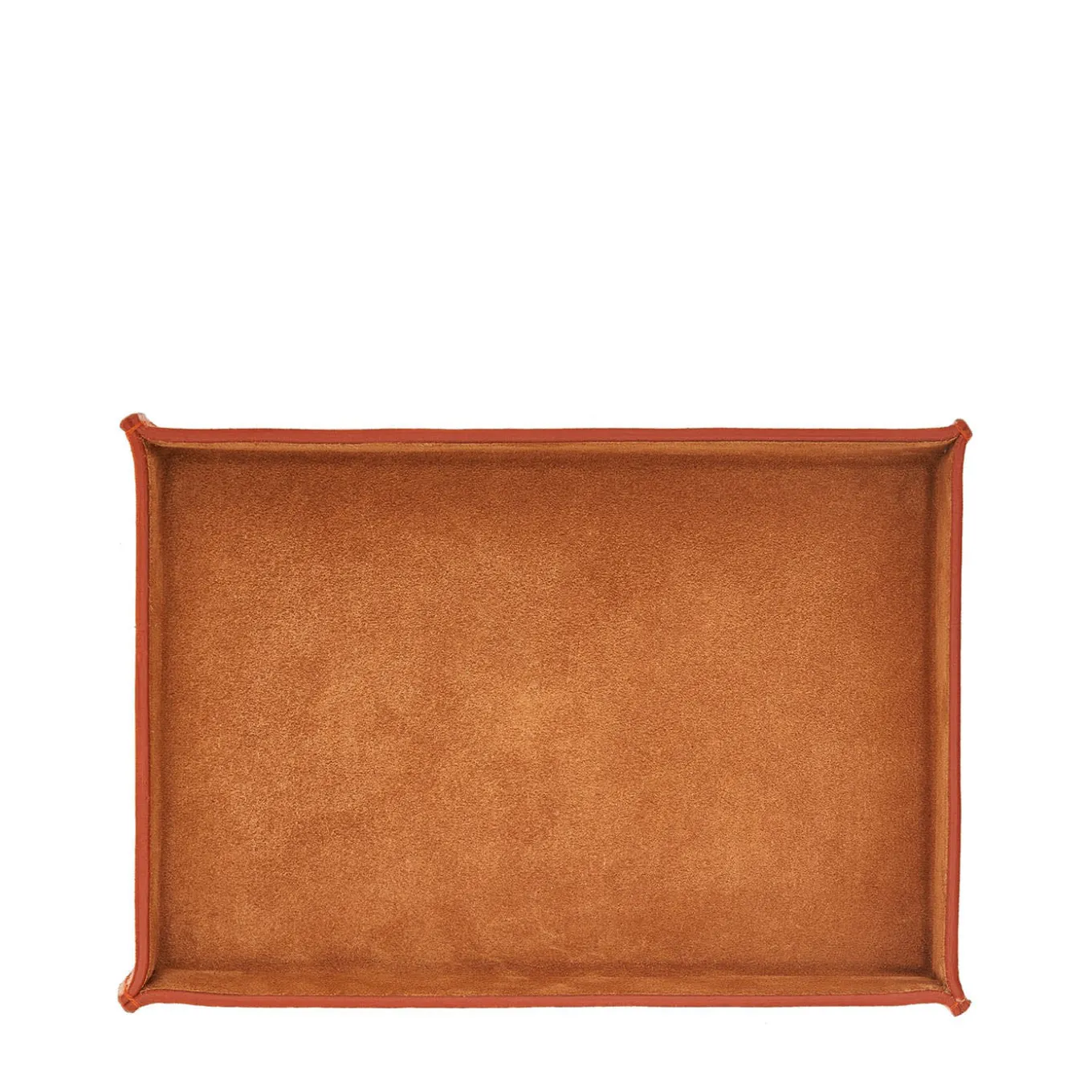 In the office, bedroom, or entryway, this small valet tray in caramel leather adds a touch of sophistication. Its structured design, made from soft, vegetable-tanned leather in a rich caramel hue, is perfect for organizing small essentials with style. Hand-stitched corners and a plush suede lining enhance its luxurious feel. Expertly crafted in Tuscany by master artisans, this tray embodies Il Bisonte’s commitment to quality and tradition.