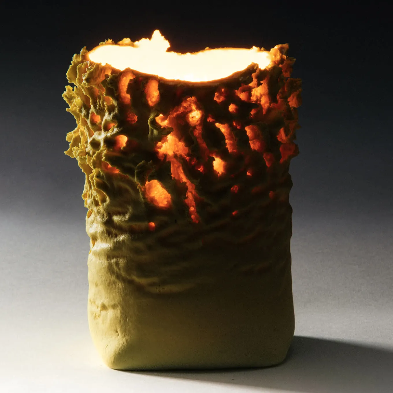 Elegantly embodying the essence of contemporary design, this candle holder draws inspiration from the rugged beauty of volcanic landscapes. With its distinct, sculptural form, this piece transforms any environment, inviting a sense of organic charm and sophistication. Crafted to evoke the textural nuances found in nature, the candlestick holder features a unique surface reminiscent of lava rock, complete with intricate details that mimic the delicate life of lichens and the starkness of stone. This artistic approach not only celebrates the beauty of imperfection but also serves as an artistic documentation of the relationship between flora and the rocky terrains they inhabit. This unique design is ideal for those who appreciate a blend of artistry and functionality, making it a striking addition to home décor. One-of-a-kind piece.