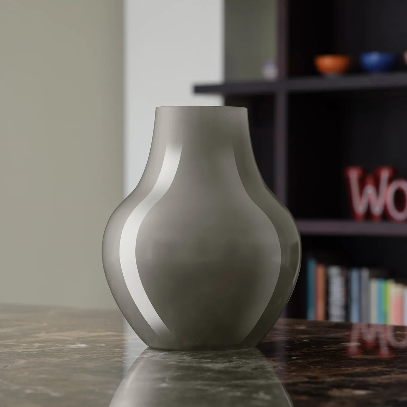 The Soho vase, made from gray and milk-white cased glass, features an exquisite cold-cut design that highlights its elegant form. This sophisticated piece is perfect for displaying flowers or as a striking standalone accent. Its refined craftsmanship and timeless style make it a versatile addition to any decor.