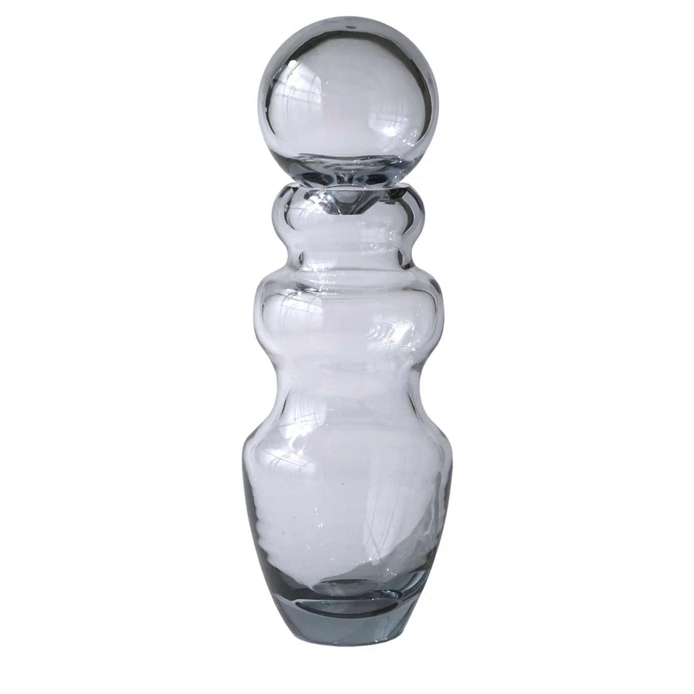 A crystal unique piece, artfully crafted using traditional hand-blowing techniques, serves as both a sculptural piece and a flower vase. The pure crystal reflects light, enhancing the interior it adorns. Variations in color and small details are the result of the craftsmanship, ensuring each piece is unique. Hand-blown and shaped in Italy. This piece is one-of-a-kind.