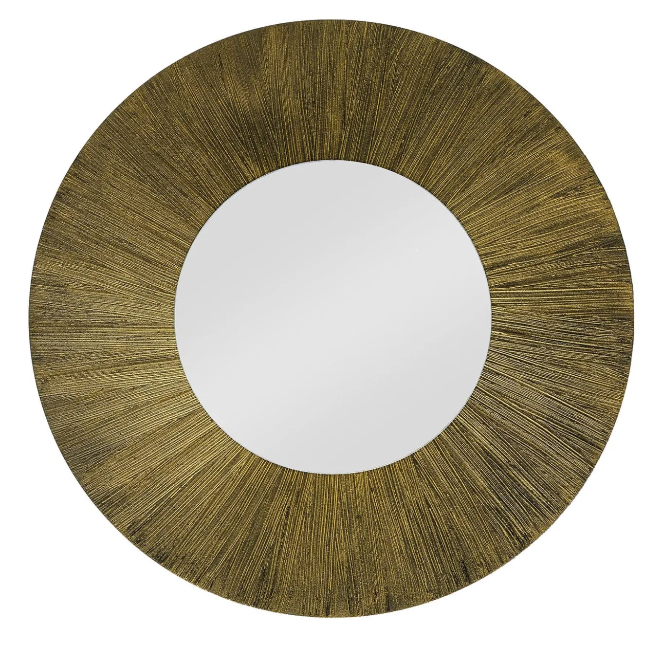 Sole Illuminated Round Mirror Decorated With Gold And Bronze Radial Brushed Resin