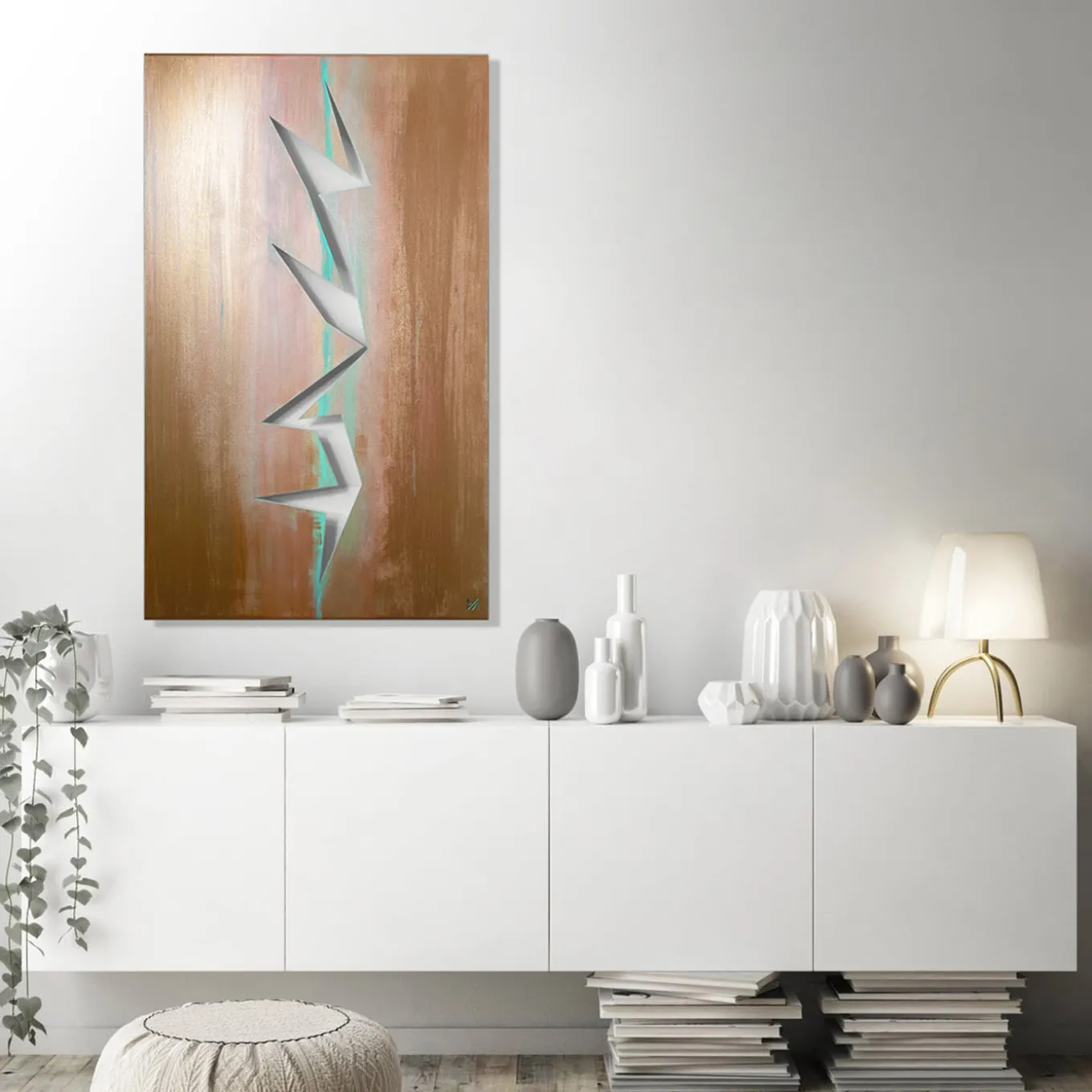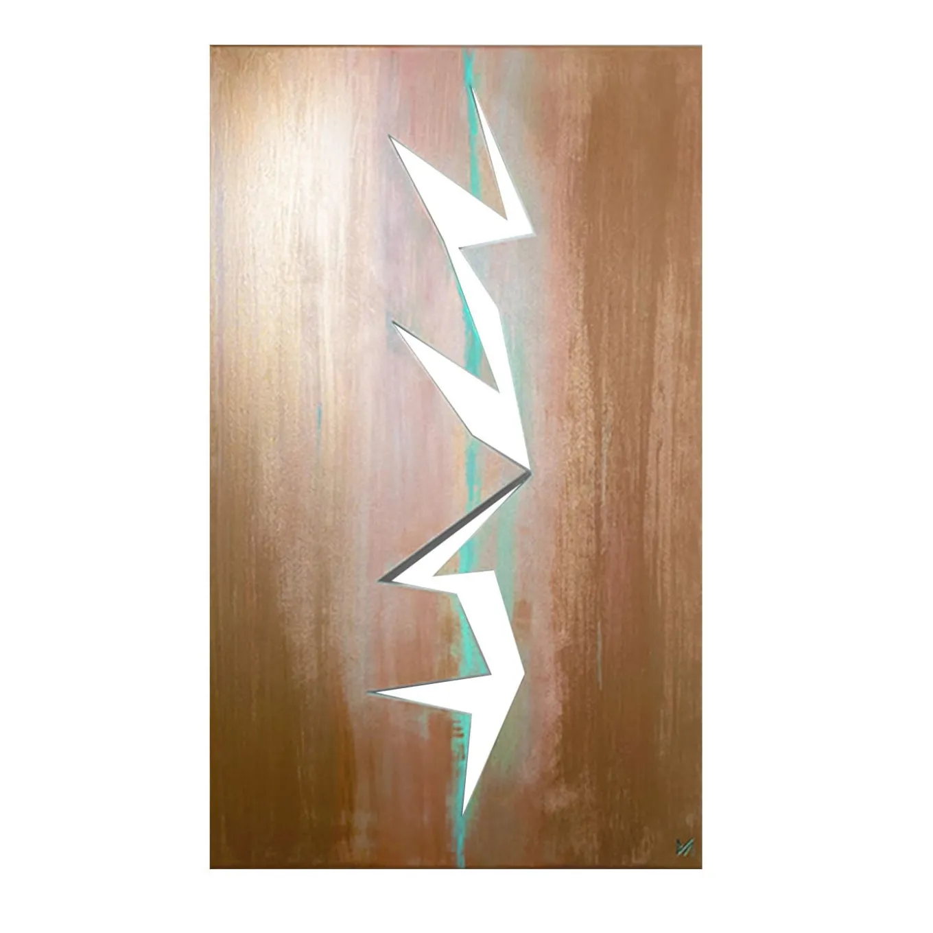 Stunning its simplicity, this sublime wall panel will infuse any decor with elegance and minimalist sophistication. Aptly named “squarcio” (Italian for gash or cut), this piece is defined by the jagged cutout running along the center of the panel: the frenetic dynamism is masterfully conveyed with the irregular edges and contrast between voids and solids. Crafted entirely of aluminum with a Hawaiian black sand effect, this piece will create captivating reflections in a living or dining room when exposed to sunlight.