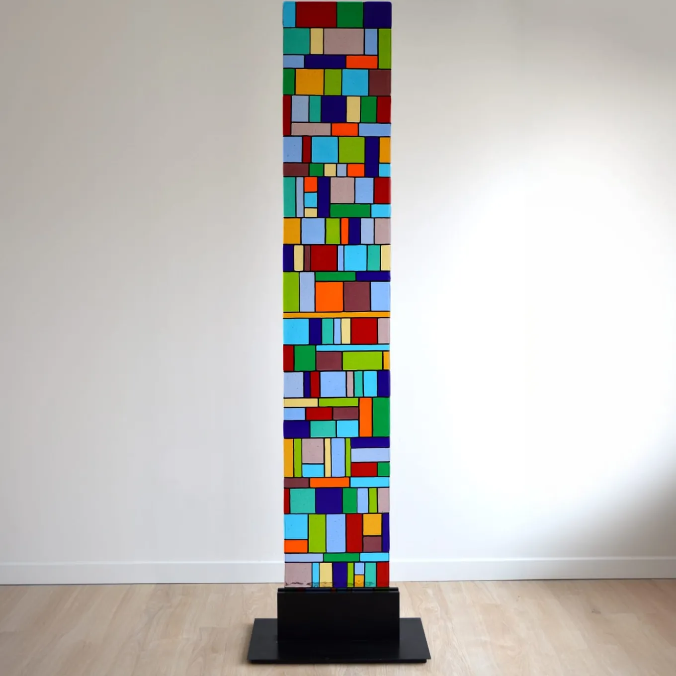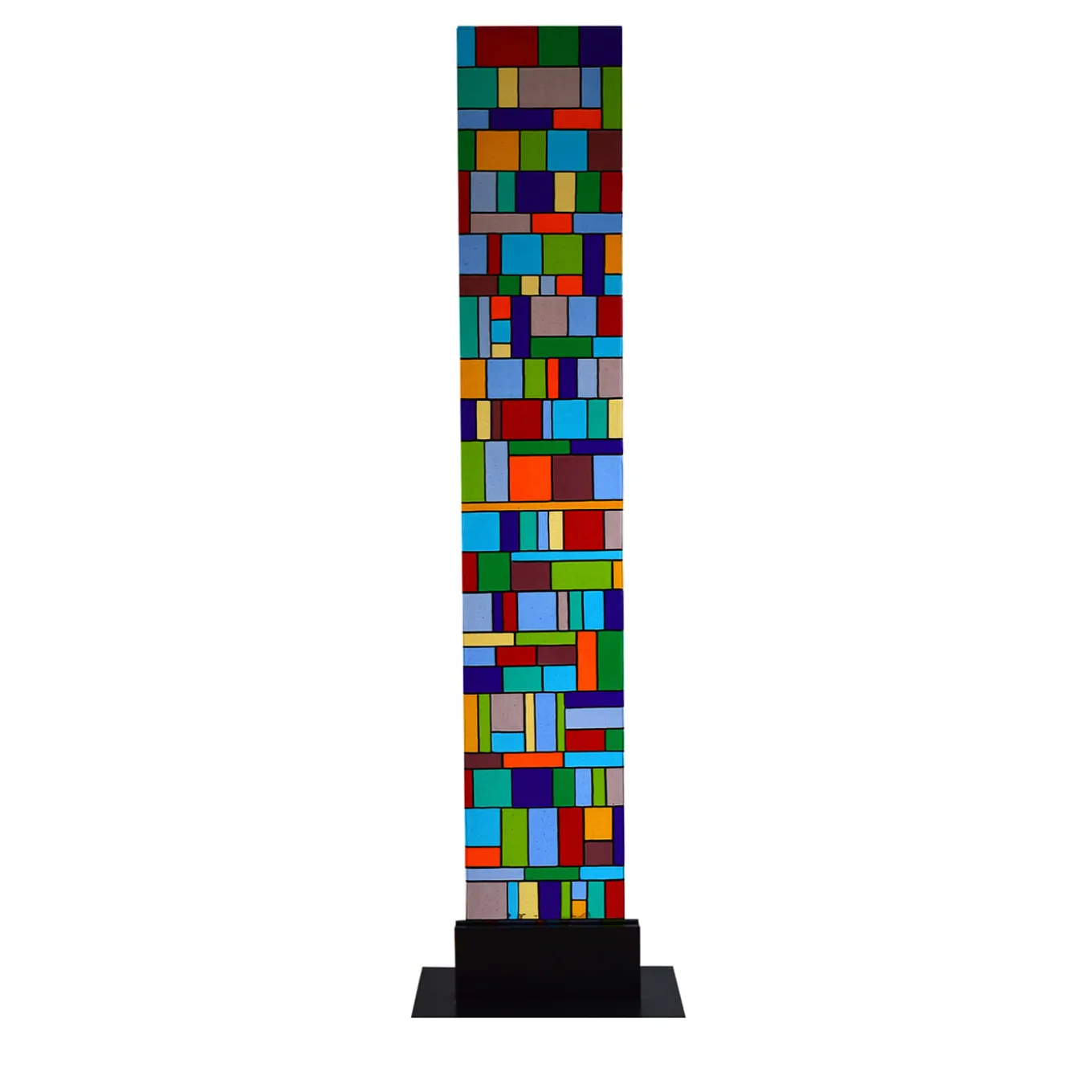 As rigorous in its profiles as it is bubbly in its chromatic assortment, this standalone statement piece will not go unnoticed. An array of polychrome Murano glass tiles minutely hand-assembled by master artisans compose its unrepeatable look distilling pure energy. A sturdy metal base sustains the mosaic panel for safe positioning in elegant spaces, be they contract, hospitality or private interiors.