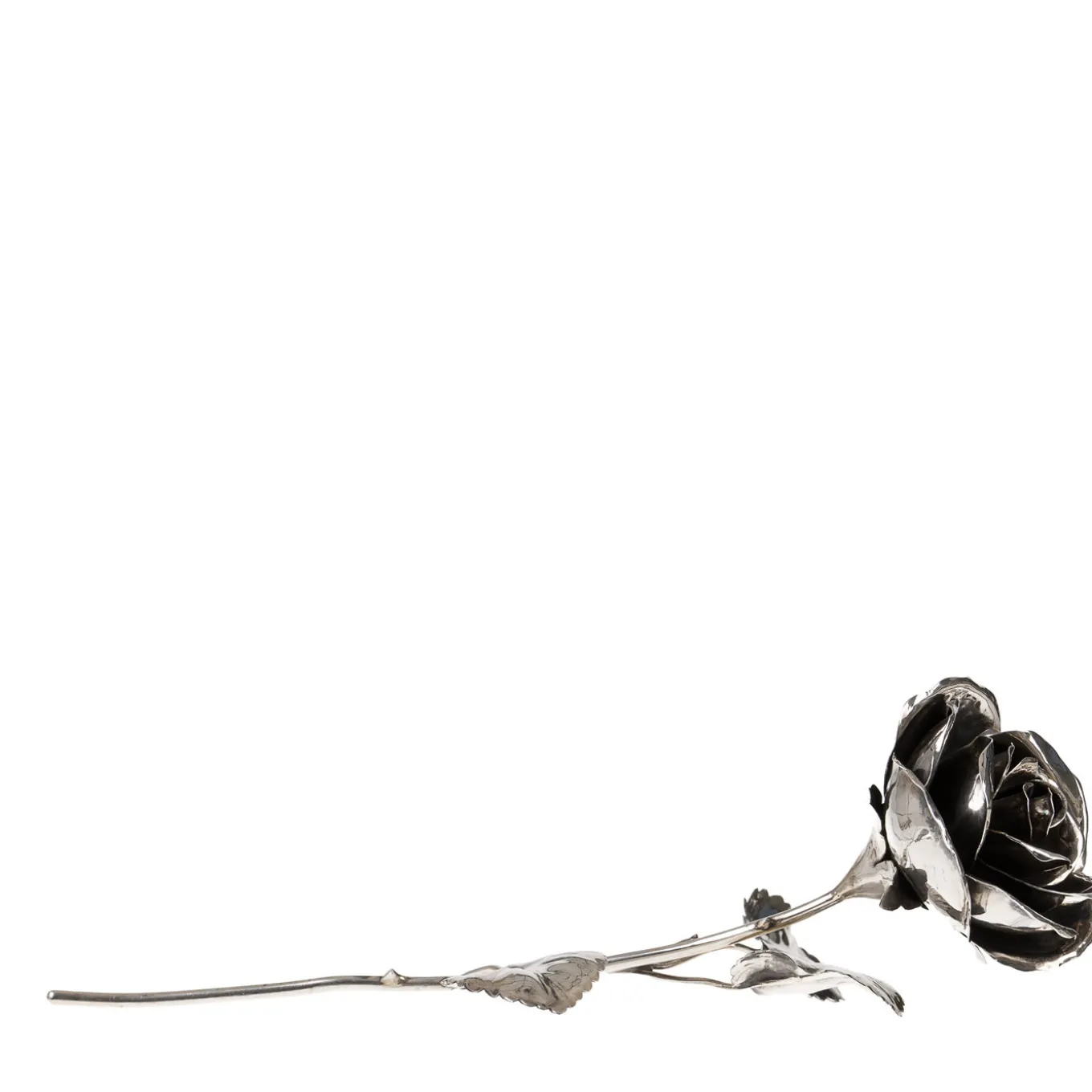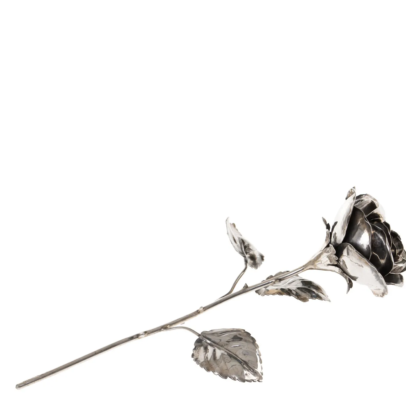 At once symbolic and ornamental, the deft workmanship of the Florentine silversmith workshop Lisi Brothers achieves a life-likeness in this elegant sterling silver rose. The flower embossed and engraved by hand in order to achieve the highest degree of detail.