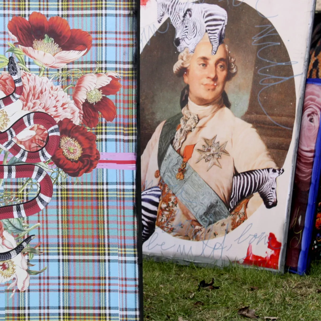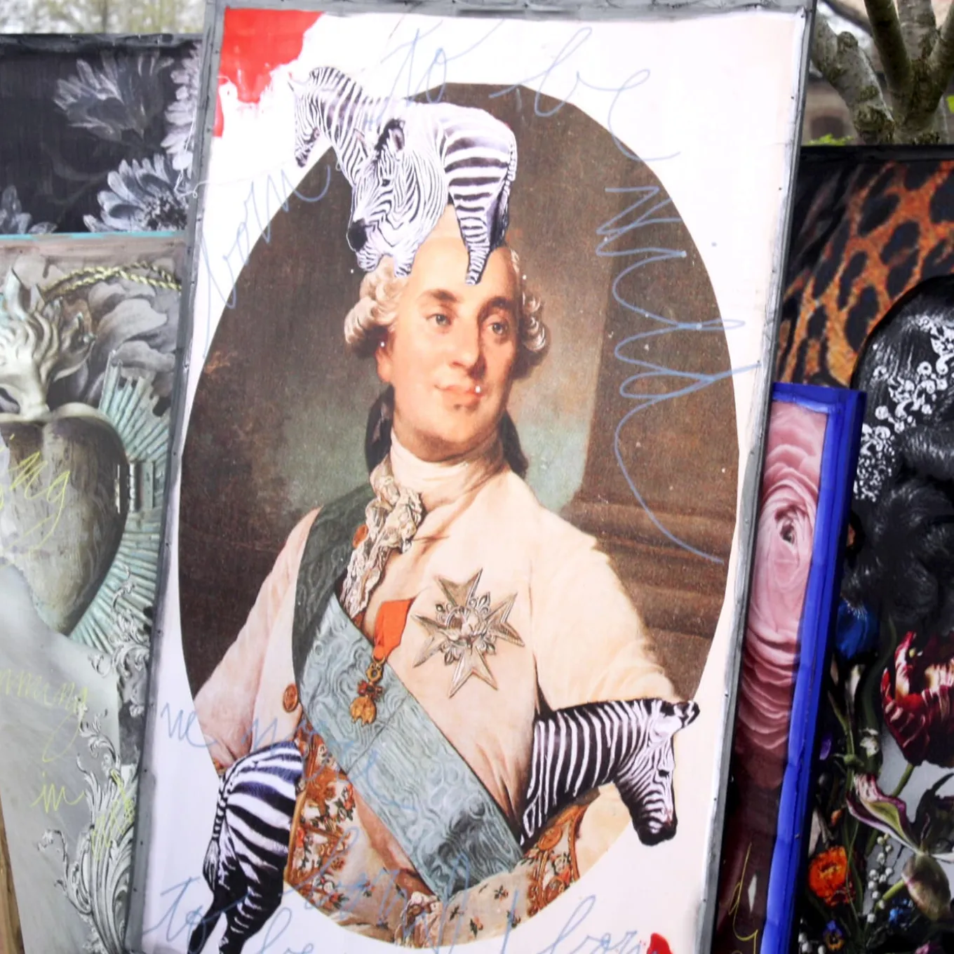 Exuding an iconic, glamorous glow that will effortlessly elevate any style decor, this refined, eclectic tapestry is an artwork from a limited edition by set and costume designer Barbara Petrecca. A singular representation of Louis XVI, it is printed on fabric and finished by hand with acrylic paint. Framed on a rough wooden canvas, it may feature slight variations from the pictured item due to its handcrafted nature.