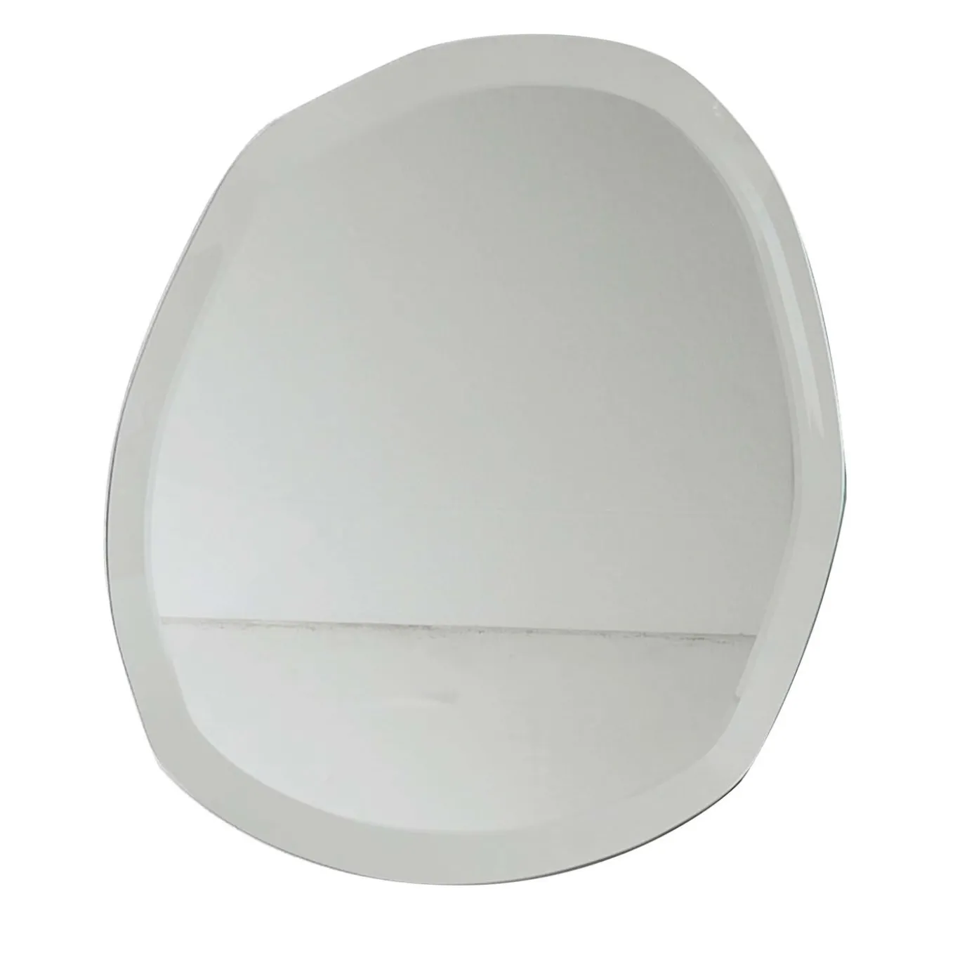 Suggestively evoking the allure of natural stone, this striking wall mirror by Norberto Delfinetti is certainly a one-of-a-kind object of functional decor that will stand out in any refined, modern interior. The glass is available in both natural or bronzed finish and it features beveled outer edges for an eye-catching visual effect.