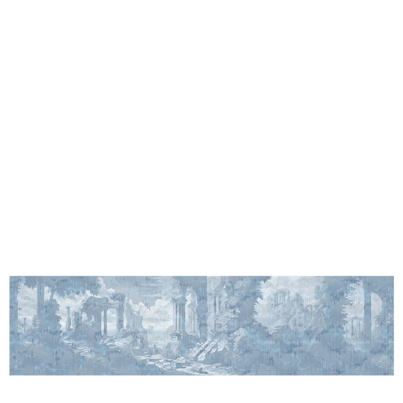Discover the captivating essence of the Storm of Stones and Shadows Wallpaper in the Light Blue edition. This striking creation merges classical grandeur with contemporary flair, featuring Piranesi-like Roman ruins harmoniously paired with a multicolored yet tonal Ikat pattern. The design invites a timeless aesthetic, seamlessly blending history with modernity. An intriguing aspect of this wallpaper is its subtle camouflage element woven throughout the composition, adding depth and interest to any space. Designed to evoke a dreamlike interplay between the past and the present, this wallpaper is part of the Visioni collection and reflects a unique artistic vision. Printed on a fine art wallpaper texture with a matte finish, this eco-friendly wallpaper is crafted from premium cellulose. It has received certifications from FSC and Greenguard Gold, ensuring that it meets high standards for environmental sustainability and quality perception. With pricing indicated per square meter, it offers an elegant solution for enhancing any home décor. Artist: Magnus Gjoen