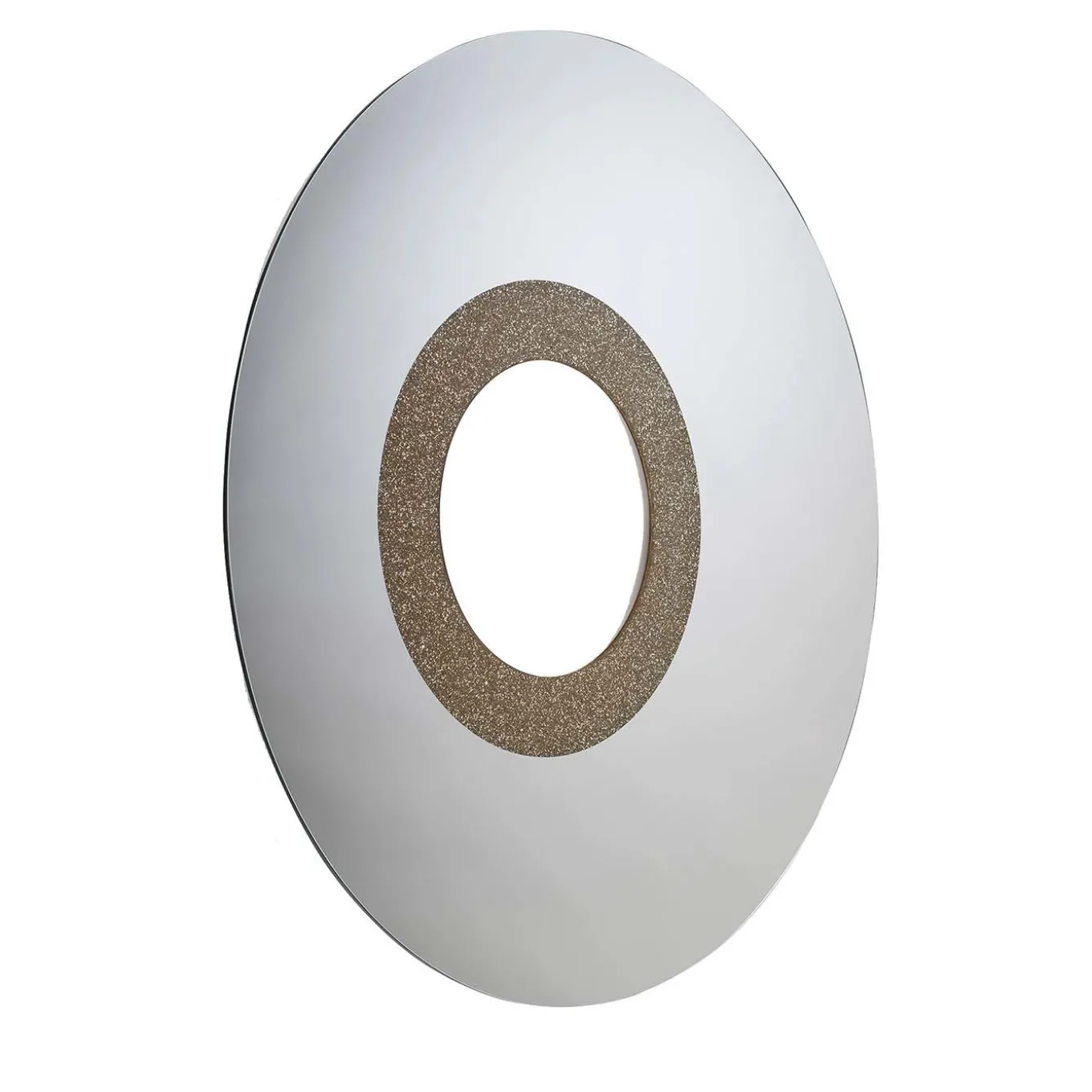 Celebrating the vital energy, impressive size, and power of the sun, the main star of the solar system, this mirror is a striking addition to a modern interior, where it can be playfully combined with the other pieces of the same planet-inspired collection by Giorgio Ragazzini. Its circular shape has a hole in the center, where an inner frame adds a textural and colorful contrast to the minimalist and frame-less silhouette.