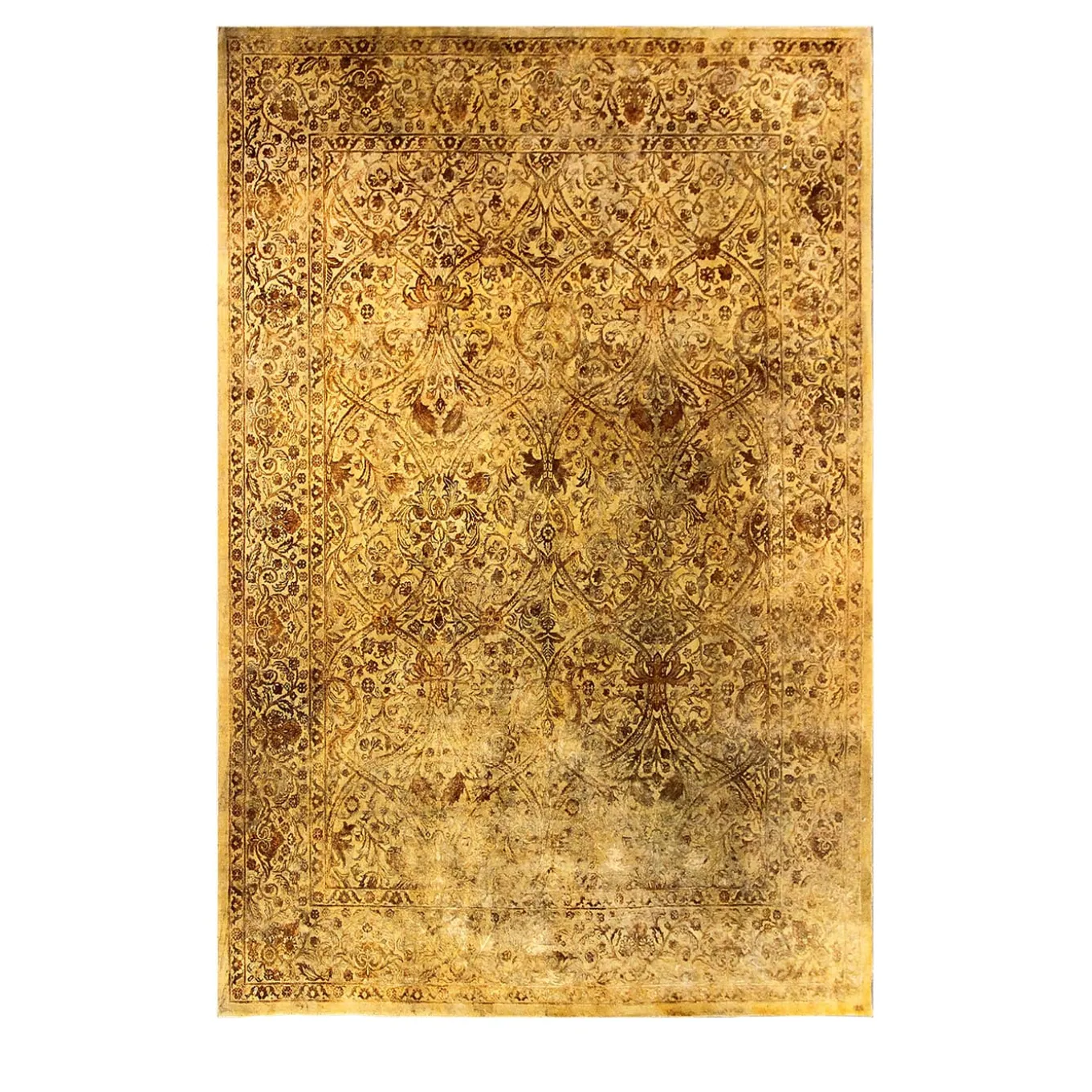 Hand-knotted with meticulous care, this rug blends 60% wool yarn for warmth and durability with 30% silk yarn. The remaining 10% cotton ensures structural integrity over time. Delicate tendrils intertwine in a dance of tradition and modernity, inspired by ancient weaving techniques passed down through generations. Soft neutrals of beige, cream, and light blue form the base, with warm accents of gold and bronze adding depth. It is available in various colors, shapes & sizes.