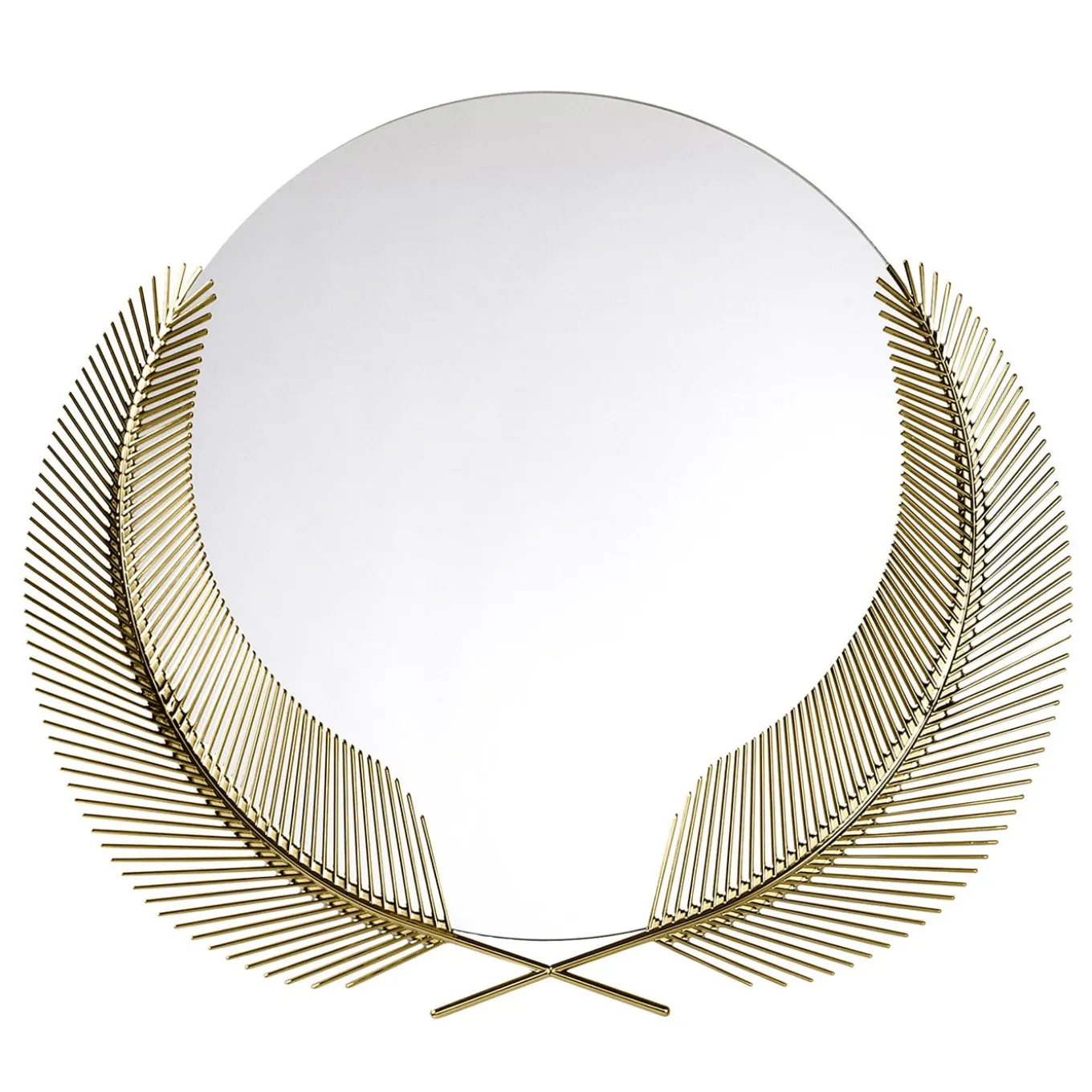 A sublime design of sophisticated contemporary allure, the Sunset Mirror by Nike Zupanc is a celebration of the summer season. Crafted by hand of bronze-finished brass, it features a stupendous frame comprised of two palm branch-shaped elements, exuding a warm and nature-inspired ambiance. Available in other sizes and finishes, please consult the Artemest catalog for options.