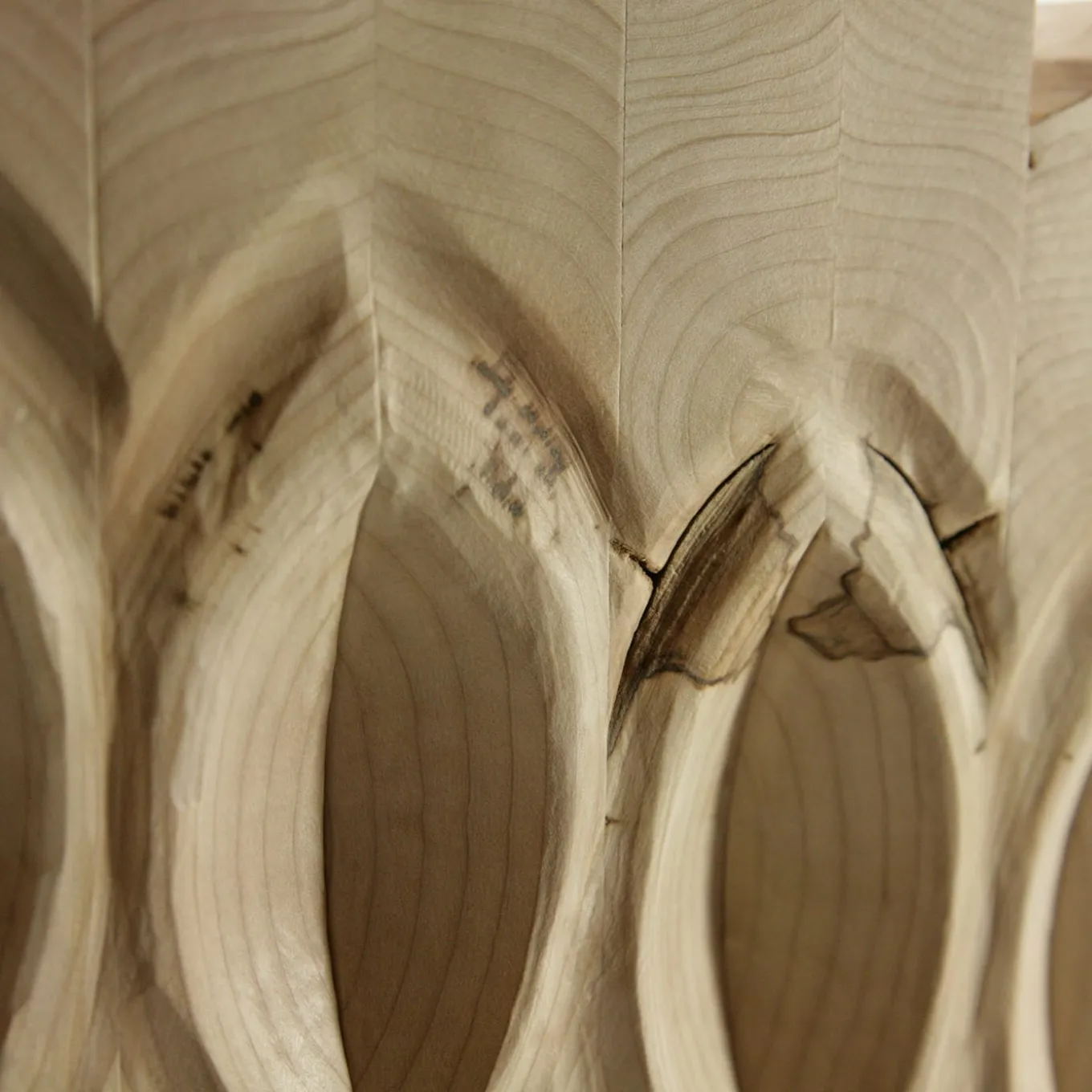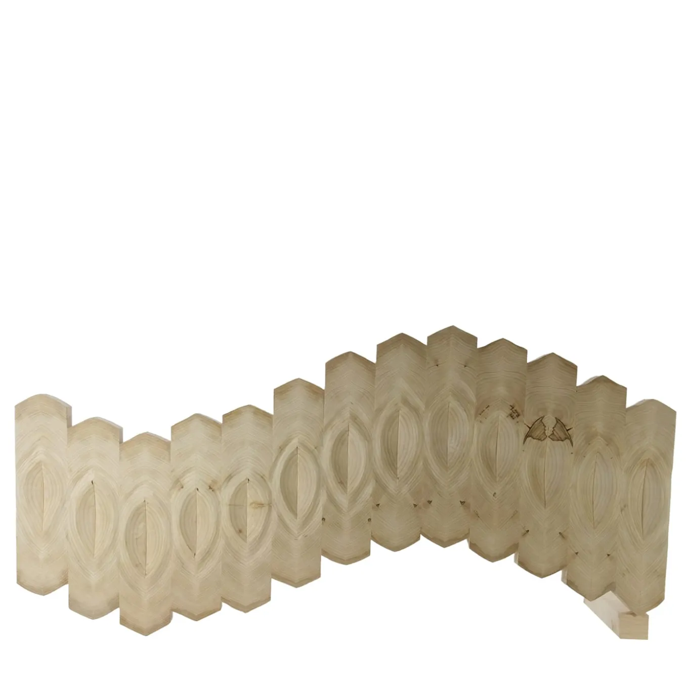 Masterfully cut and carved elements obtained from a single board get dynamically assembled into a sinuous silhouette for crafting this seductive decorative panel. Fashioned of wood, it captures the eye with its delicate symmetries naturally coexisting with singular woodgrain detailing. Different versions are available in the Artemest catalog.