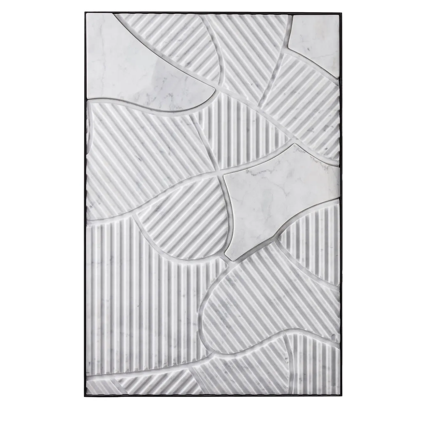 Terre Arate in white Carrara marble is part of an exclusive stone artwork collection, showcasing surfaces developed over time. It reflects the vision of designers like Michele De Lucchi, Marella Ferrera, and Marco Piva, transforming textures and geometries into true masterpieces. Framed in matte black metal, it is easy to mount and suits any space. A tribute to Lithea’s craftsmanship, it blends tradition and innovation. Frame included.