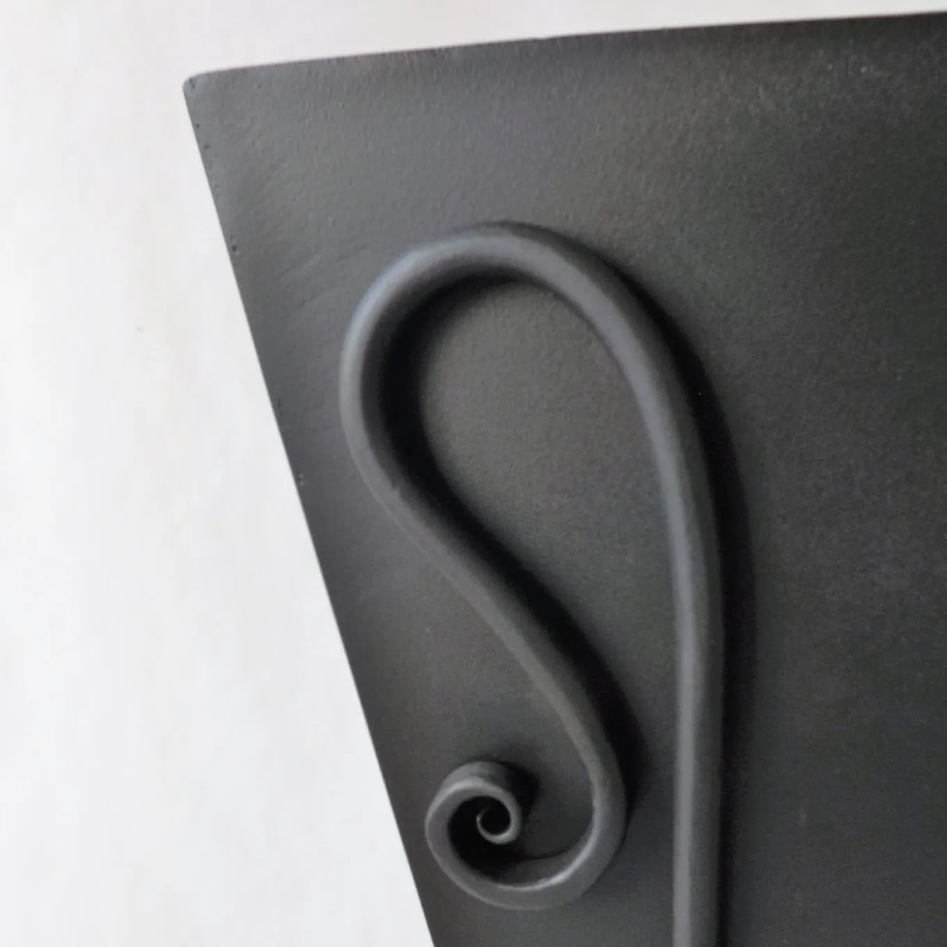 Designed in collaboration with Sardinian architect Roberto Virdis, this black metal pedestal with a vase showcases minimalist elegance. Standing at 82 cm, its matte black lacquered finish and sleek form create a refined visual impact. The dynamic, interlaced leg design adds modern character and stability. Ideal for displaying flowers or decorative accents, this piece infuses spaces with contemporary sophistication, blending artistic collaboration and functional style.