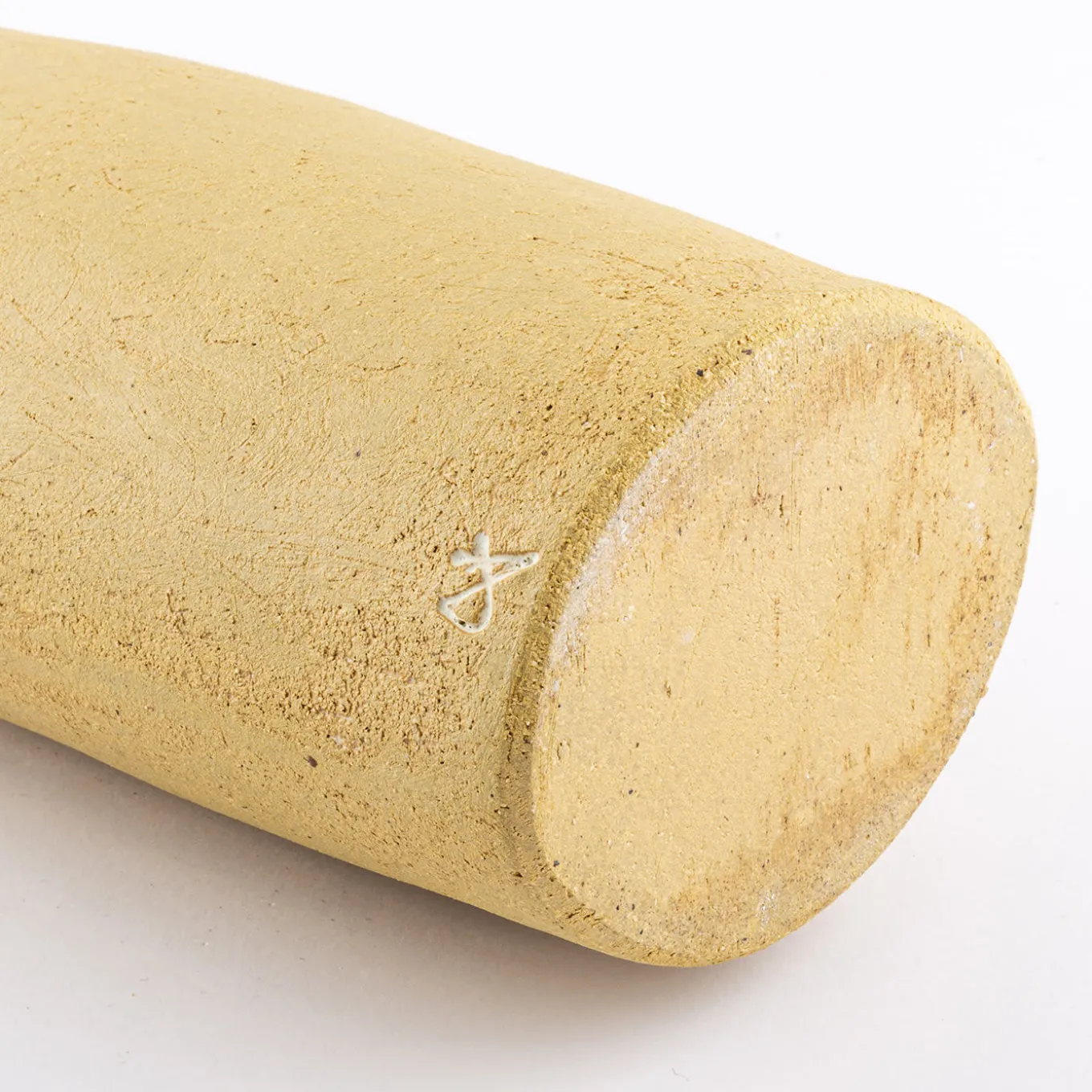 A deft showcase of craftsmanship that pays tribute to the stunning natural charm of stoneware, this splendid design can be used as a bud vase, bottle, or centerpiece for a modern dining table. Showcasing a clean and tapered silhouette enhanced with a pastel yellow hue, it is internally glazed for more practical use.