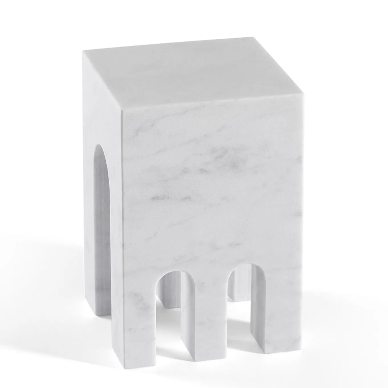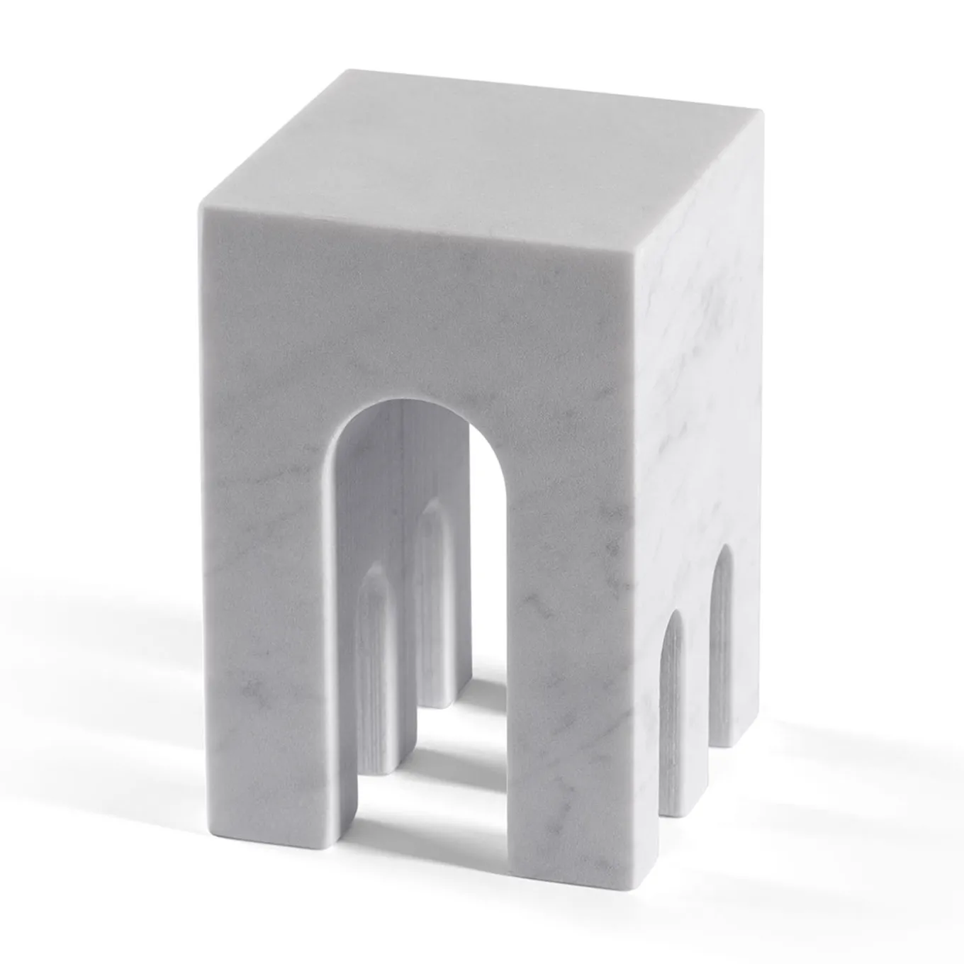 Part of The Village Collection, this exquisite sculpture is an invitation to grasp the essence of home through the white Carrara marble, resilient, and unique natural stone. A series of arches are cut out from its parallelepiped body, which celebrates with its rigor the essential lines typical of the artistic movement – Novecento – after which the piece is named. Multiple marble variants are available upon request to the Concierge.
