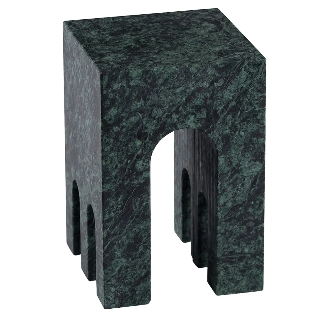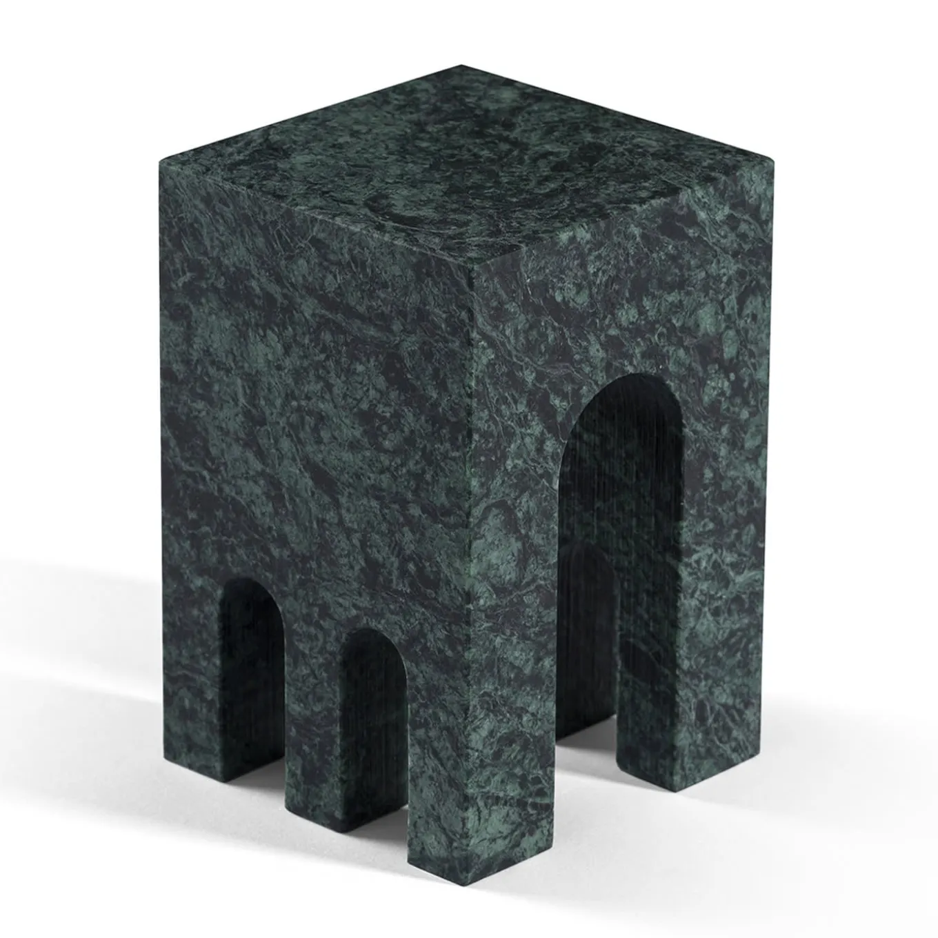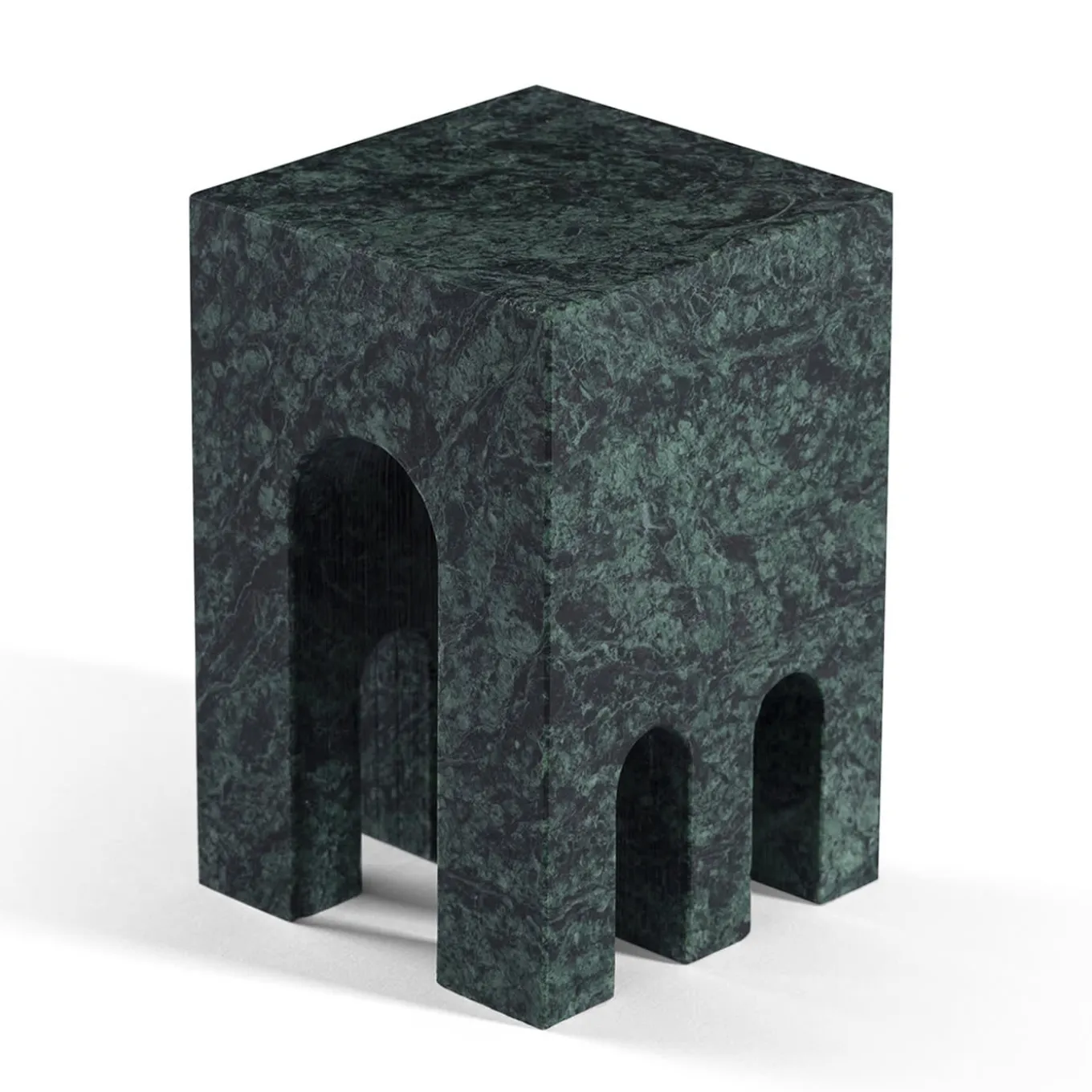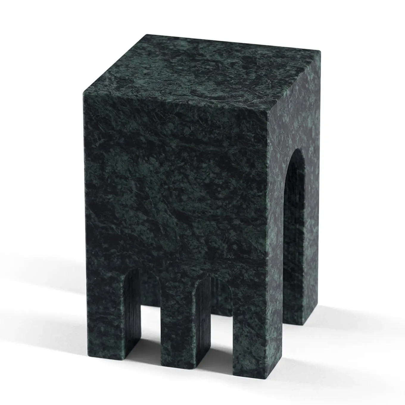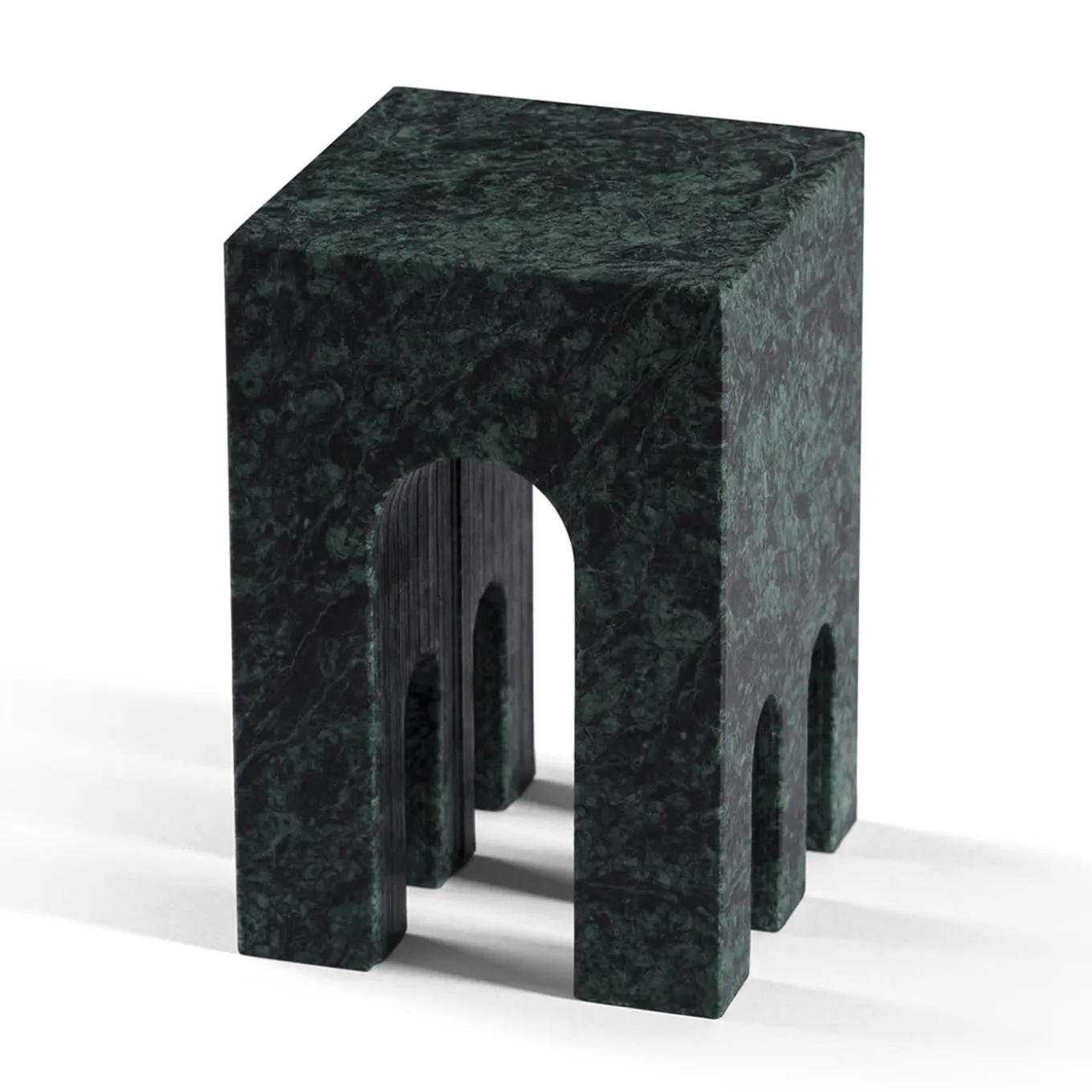 Part of The Village Collection, this superb sculpture is an invitation to reflect on the essence of home as a place where one can feel protected and loved, more than merely a roof but a safe haven. This concept spread as a consequence of the lockdown people experienced in 2020. A series of arches are cut out from its parallelepiped body in green Guatemala marble, marked by clean lines typical of the architectural movement of Novecento. Other marble options are available upon request.