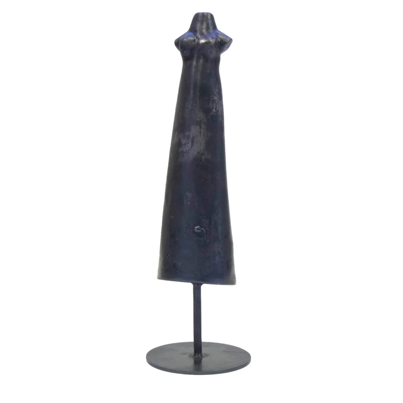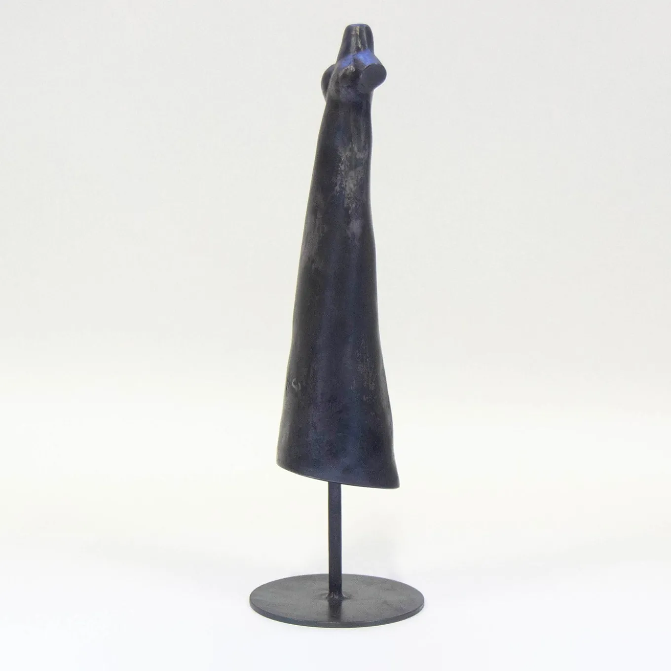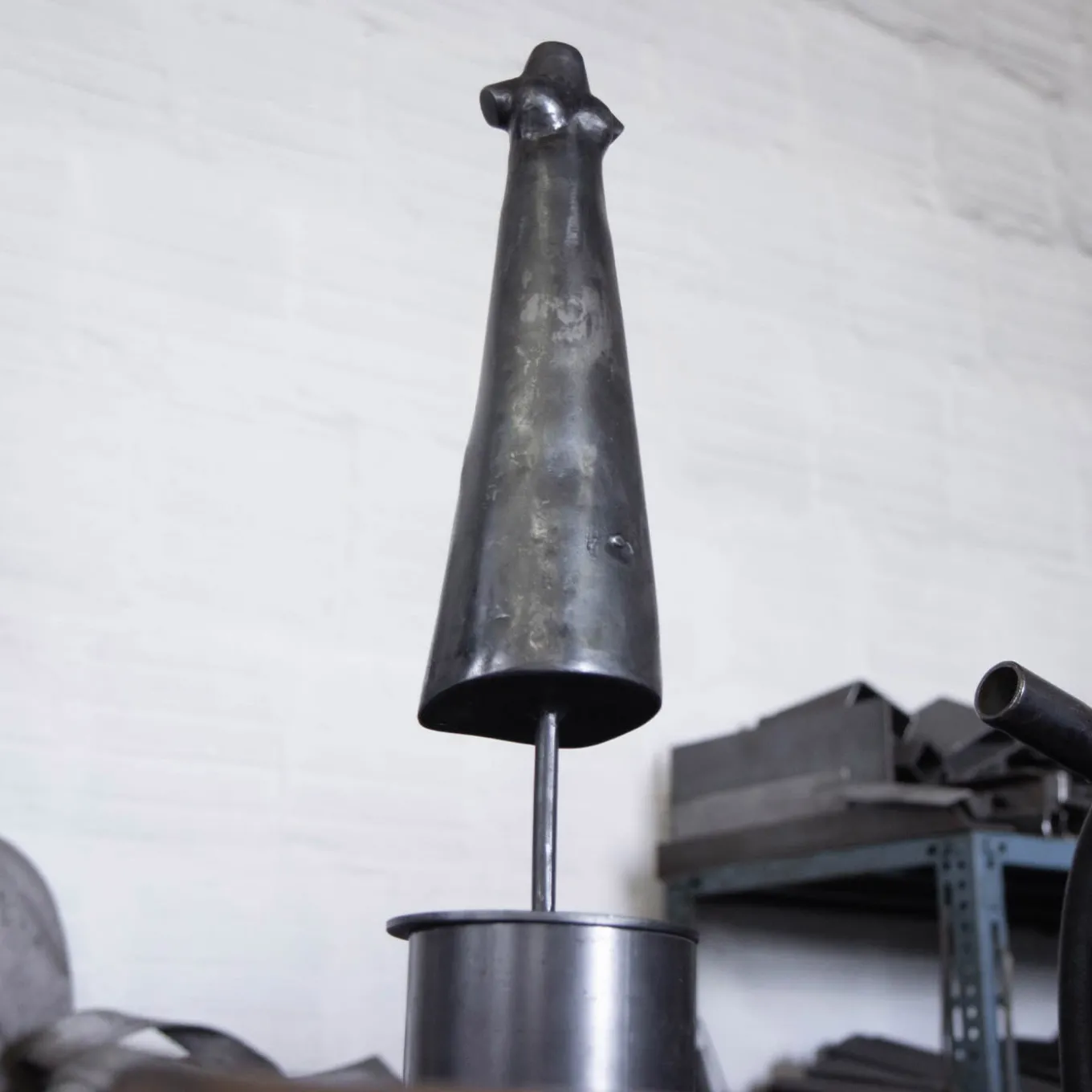 The counterpart of the “Fat Woman N.5” Sculpture, this singular artwork further explores the relative character of beauty. A quiet rod base sustains her thin and stylized anthropomorphic silhouette, which is obtained by molding a single iron sheet directly on the anvil. With this meaningful objet d’art, artist Lorenzo Quadalti states that beauty is not about icons to imitate but in the pursuit of unique details.