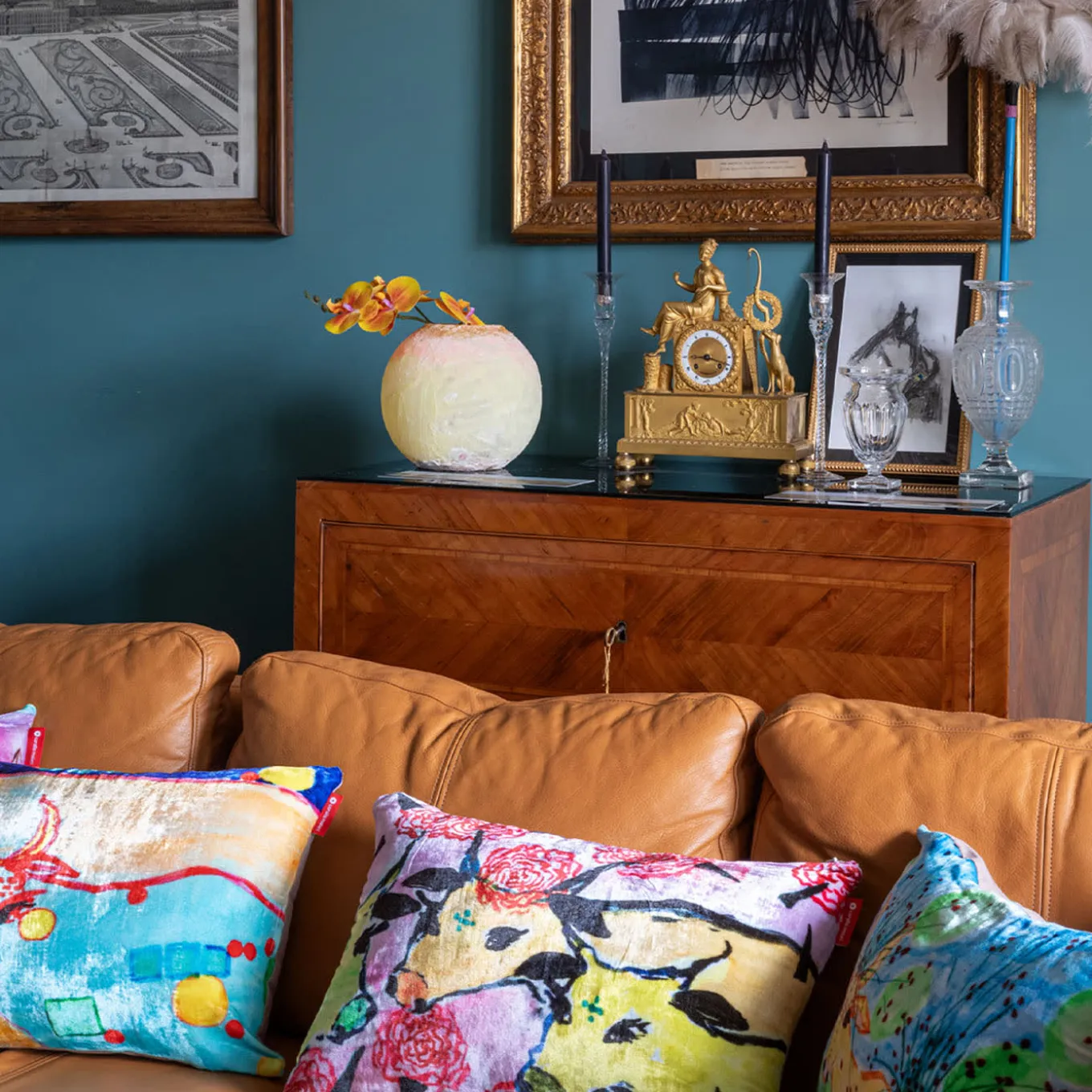 This cushion from the “cow line” collection is a unique work of art, a tribute to creativity. Crafted from luxurious silk velvet, this cushion is an explosion of color and an invitation to embrace the joy of living. The cow illustrations are not simply drawings; they are a homage to the past, reproduced from original sketches created years ago for an Indian orphanage. The natural kapok filling makes the Coralla cushion incredibly comfortable and sustainable.
