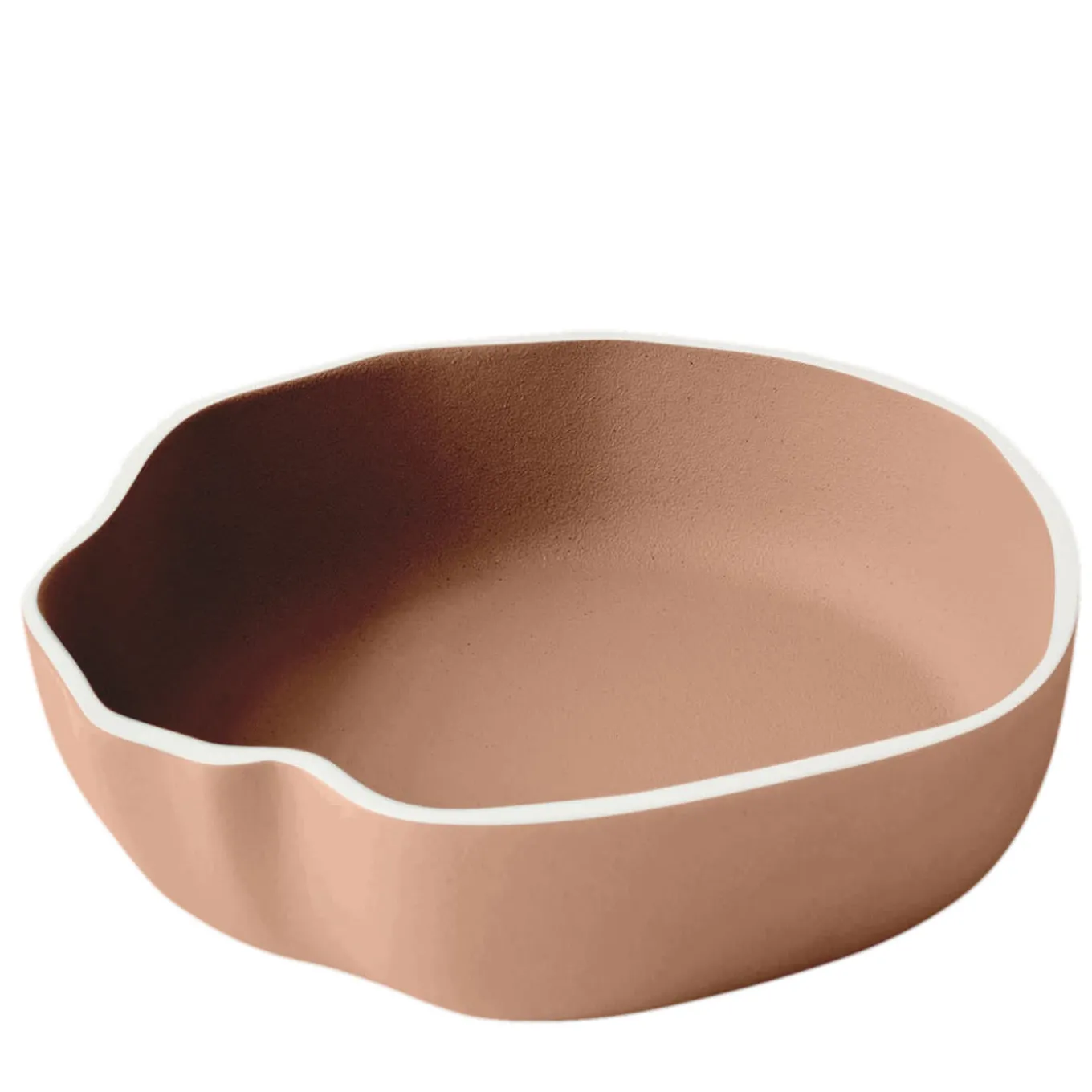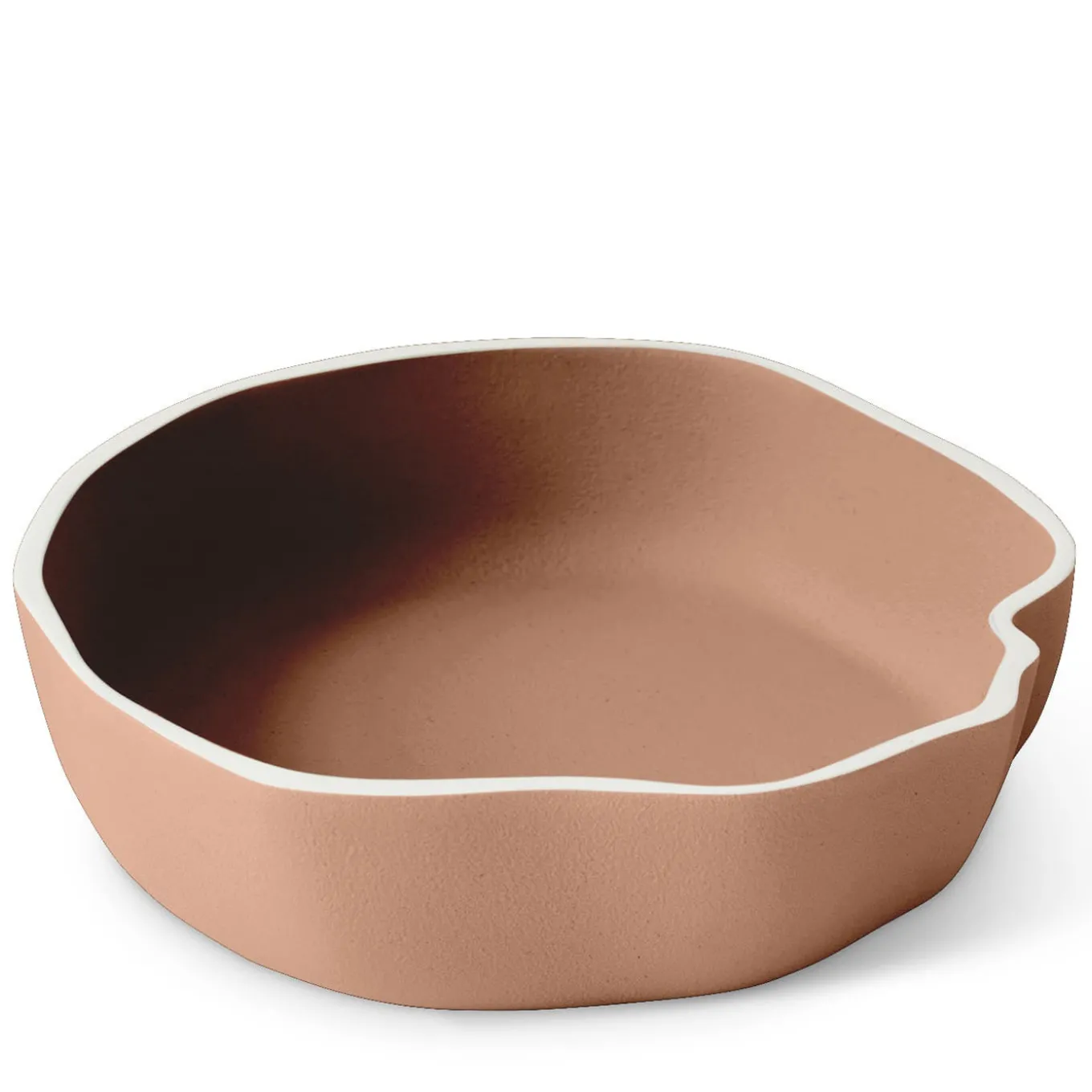 Magical is the language of nature, secret and sometimes imperceptible. The phenomenon of the tides is manifested in the variation of the landscape of our territory, feeling the force that nature exerts. The border is the main detail of this collection designed by Laura Pelosio, enhanced by the white color, it draws the outline of the centerpiece characterizing it with a sinuous and wavy line. This organic aspect makes it precious, emphasizing, even more, the value of craftsmanship. Rust colored centerpiece.