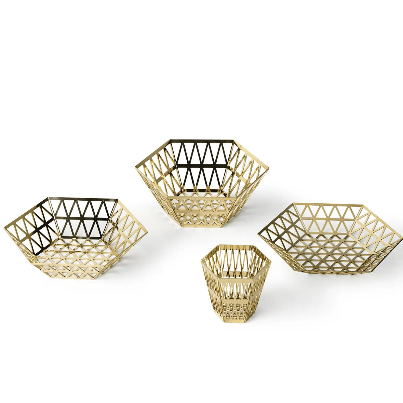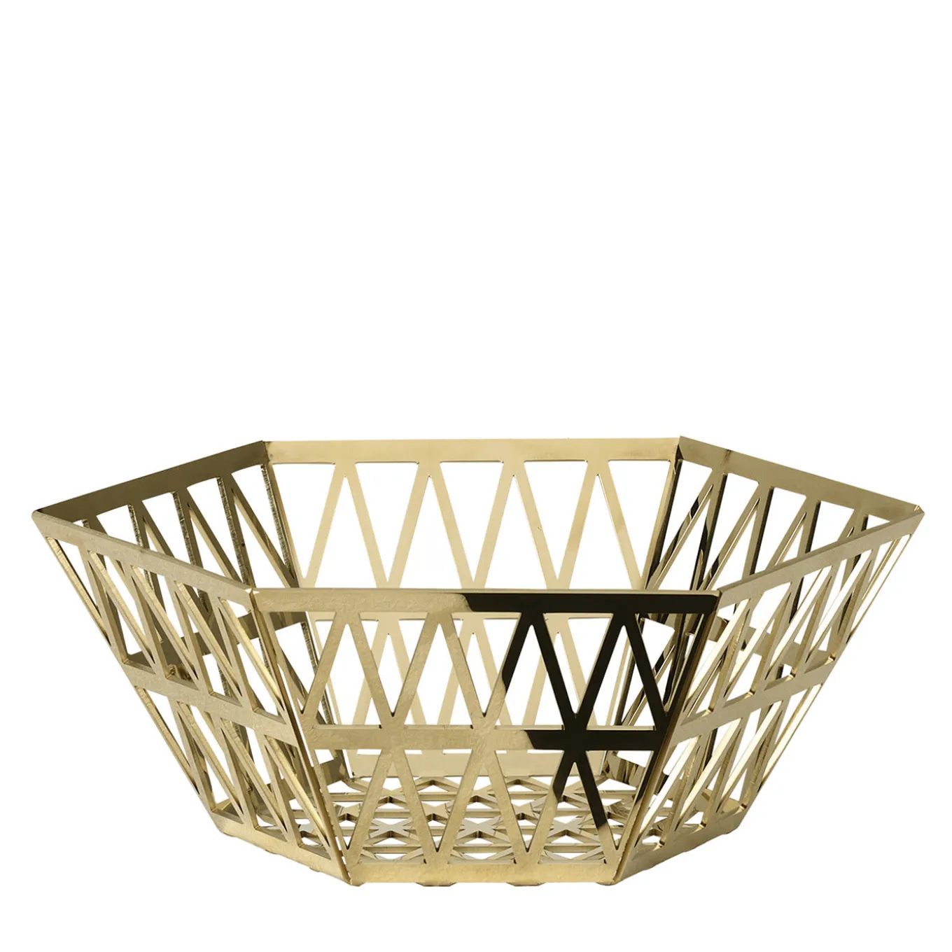 This elegant tray in stainless steel, that can be used as a bread holder, was designed by Richard Hutten. It is part of the Tip Top series which consists of hexagonal pieces made of layers of triangles.