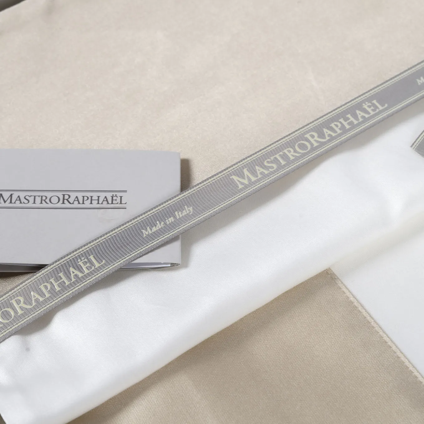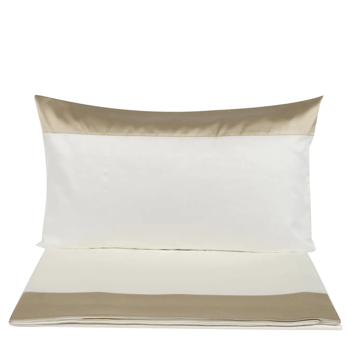 Elegant sheet set crafted from pure Egyptian cotton sateen with a 300 thread count, offering a silky-smooth feel. The top sheet and pillowcases feature a refined applied border in a silk-cotton blend, adding a sophisticated touch. The set includes a top sheet (265×290 cm), two envelope pillowcases (50×80 cm), and a bottom sheet with plain hems (265×290 cm).