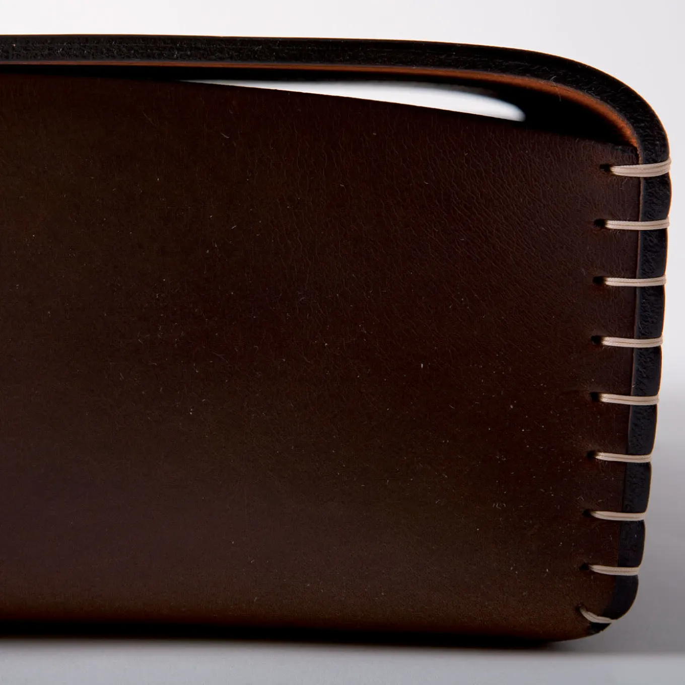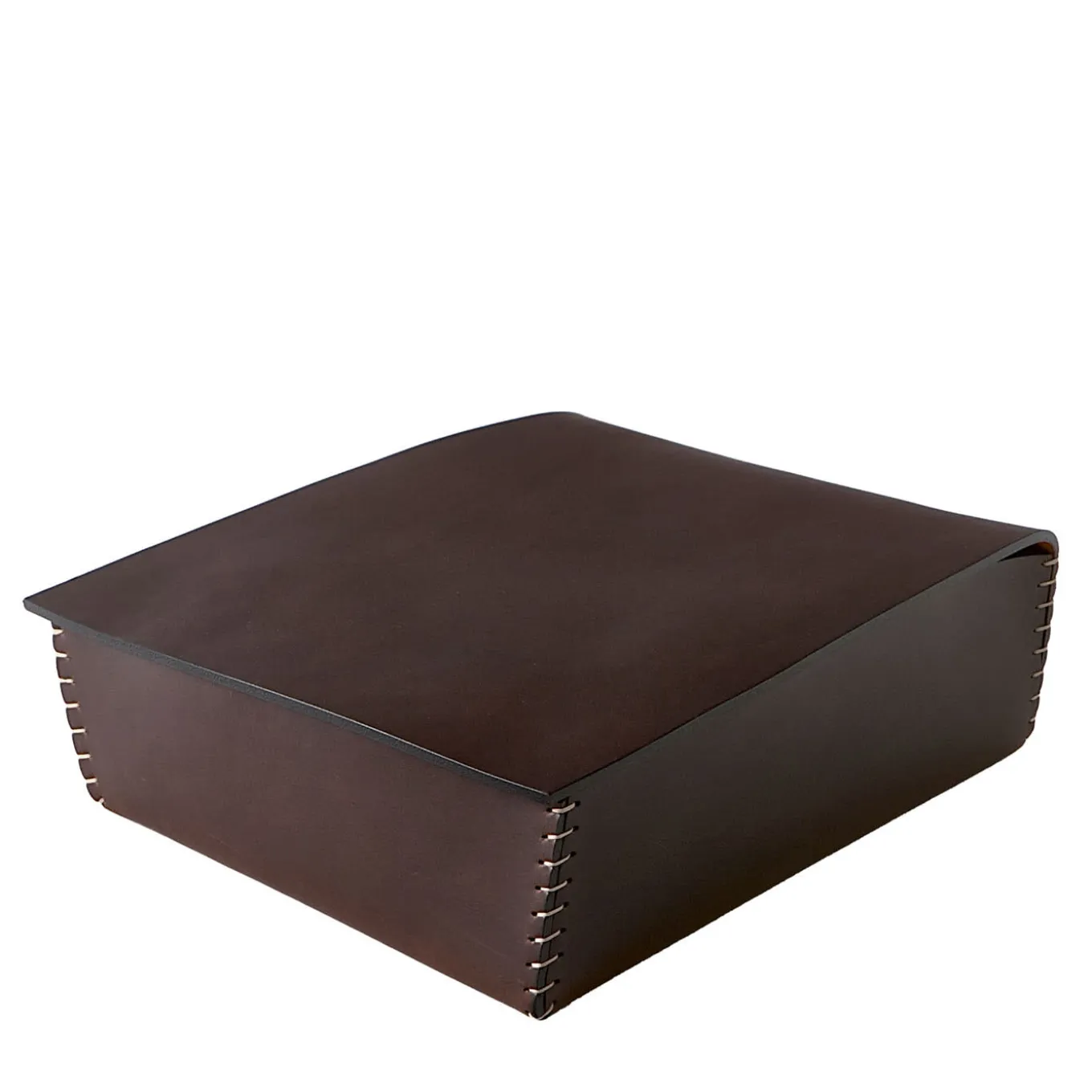Opulence and simplicity effortlessly coexist in this sophisticated box designer Claude Bouchard molded from a single sheet of premium leather. Made fresh by its subtly irregular design enriched with manual contrasting stitching, the box results from patient cutting and folding steps carried out by hand that speak to its precious artisan quality. Color contrasts between the interior and exterior are possible thanks to a wide variety of color customizations.